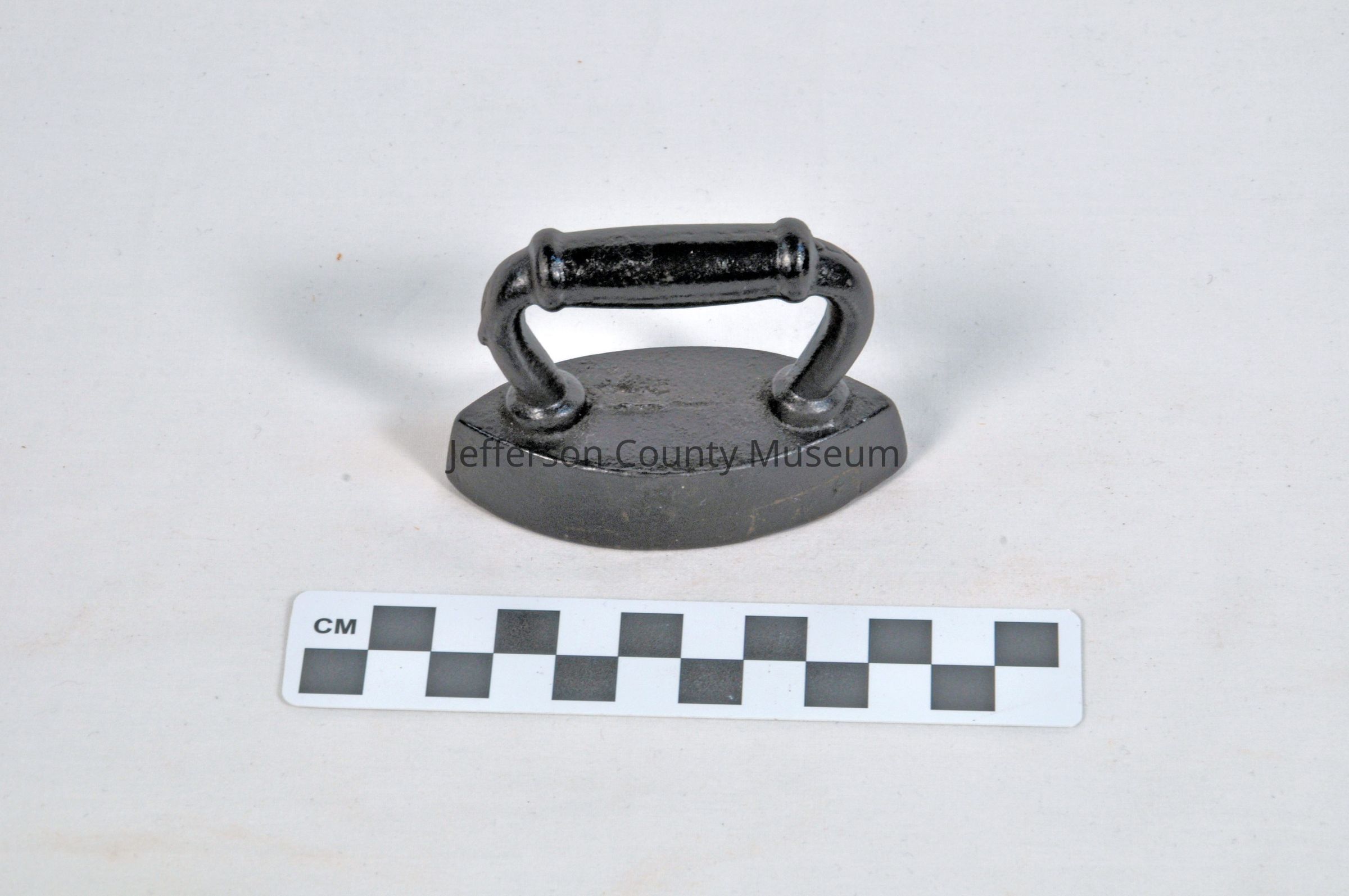 Flat iron painted black possibly made as a toy for children or a salesman sample. Also referred to as a "sad iron"Acquisition
