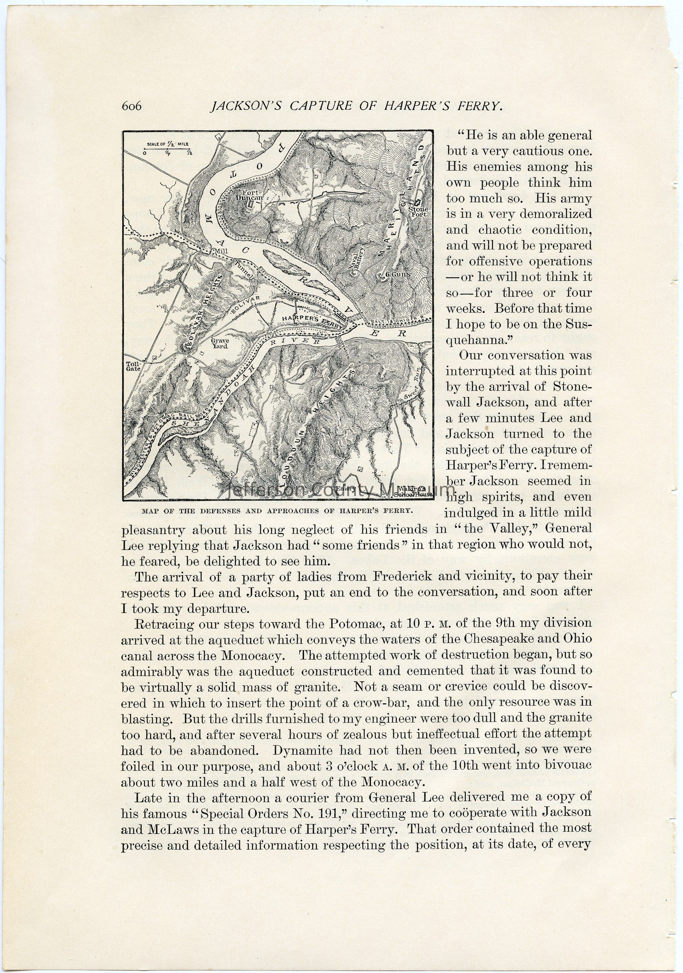 "Stonewall Jackson's Intentions at Harper's Ferry", by Bradley T. Johnson, (published as "Stonewall Jackson's Intentions at Harper's Ferry" from The Century, Vol. 38, No. 2 [June 1889]: 310-311.)Acquisition