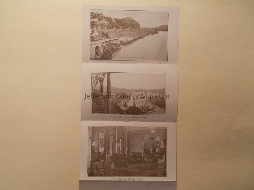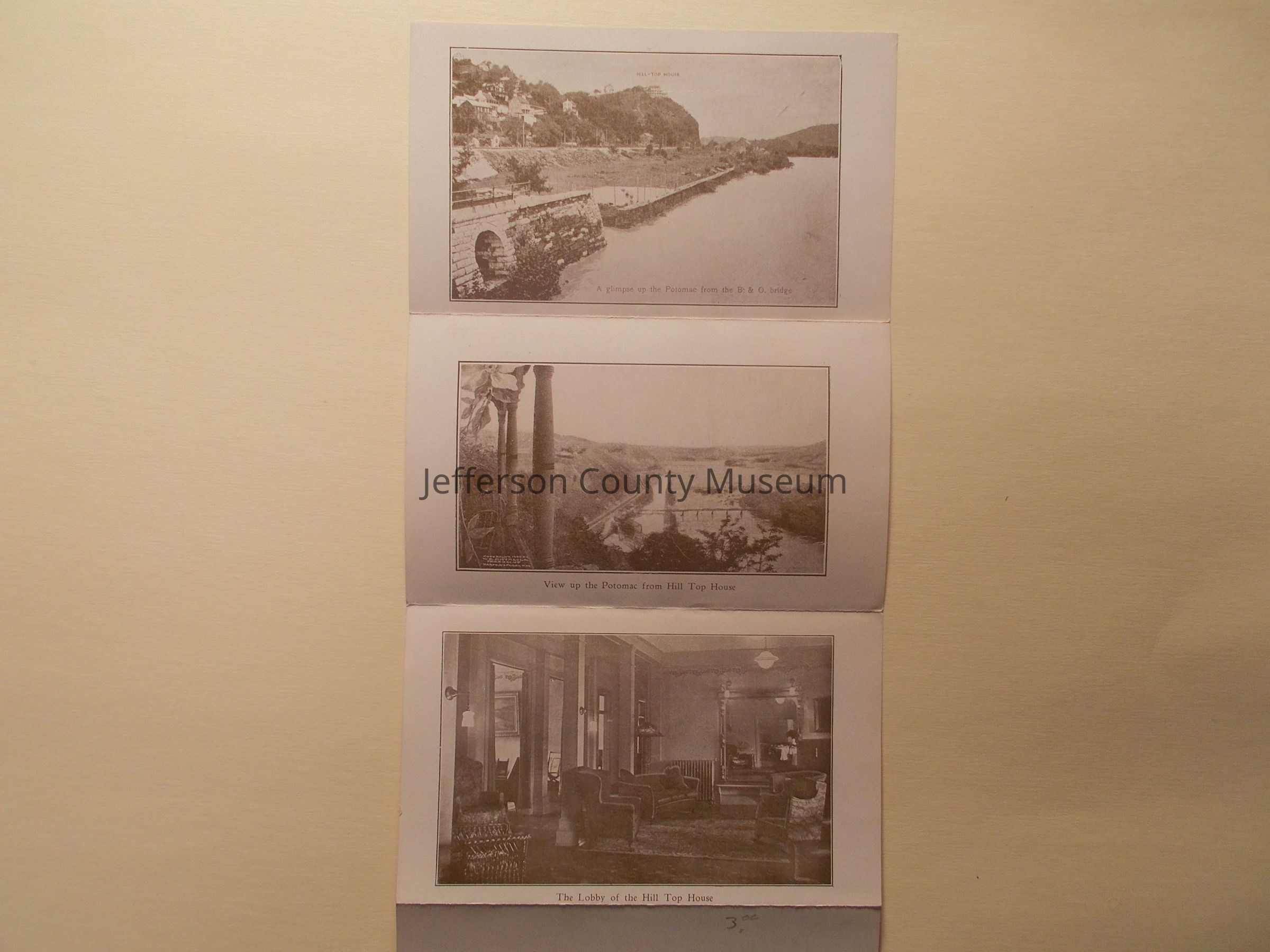 Five black and white photographs of locations in the Harpers Ferry area. The photos are accompanied by text describing the recreational and dining opportunities in the area. All are combined into a folded "brochure".