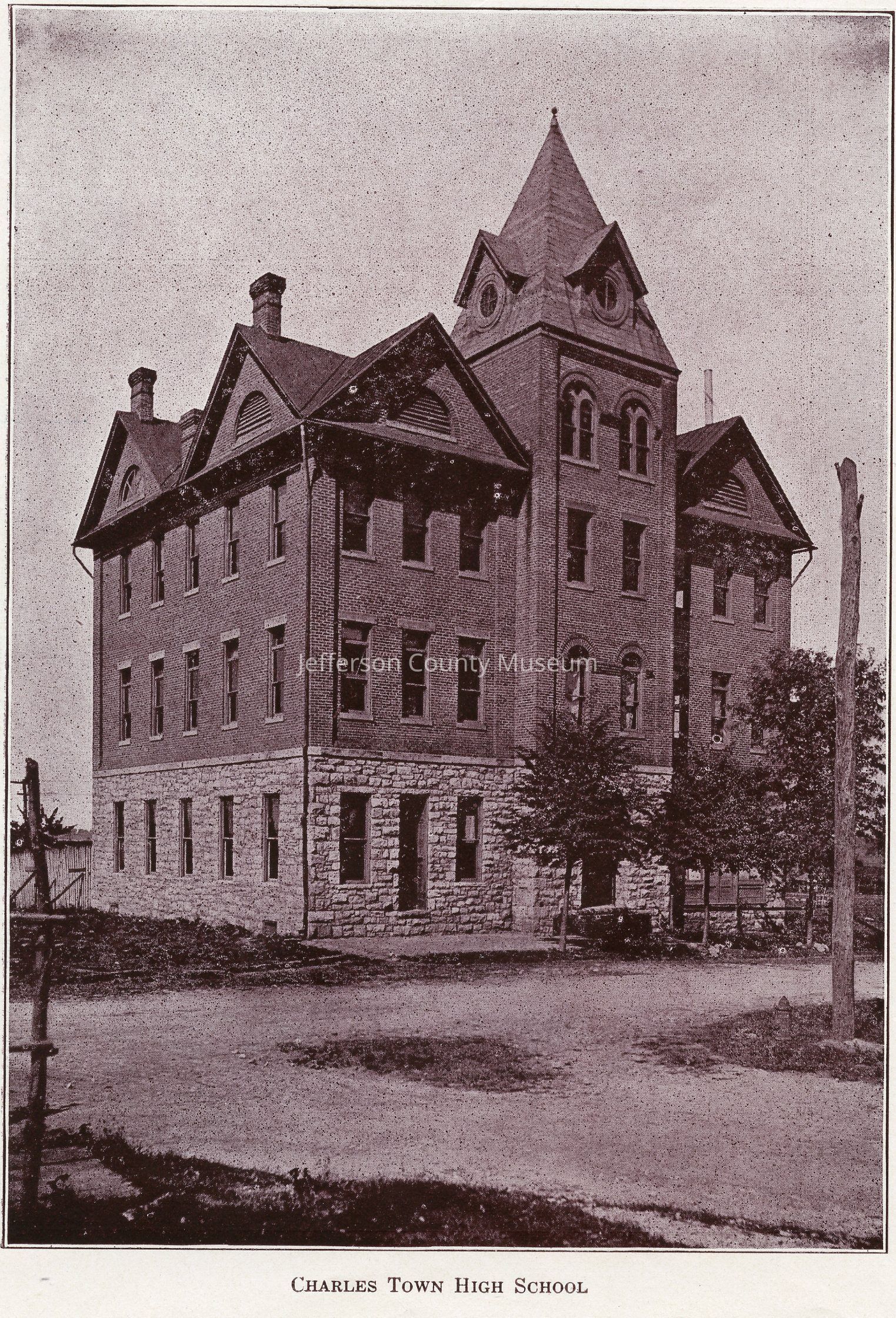 Booklet, 9" x 7", "Souvenir of Charles Town, W.Va" with red cover, c. 1900. Thirteen pages with 26 photographs taken in and near Charles Town. One page introduction with history of Charles Town. Printed at "Virginia Free Press, Charles Town, W.Va. George E. Wysong, Printer." Second copy of photos without cover. Third copy has tan cover and the following inscription "To Aunt, Kate Ott From Her Nephew Albert Vernon Garney august 1908".