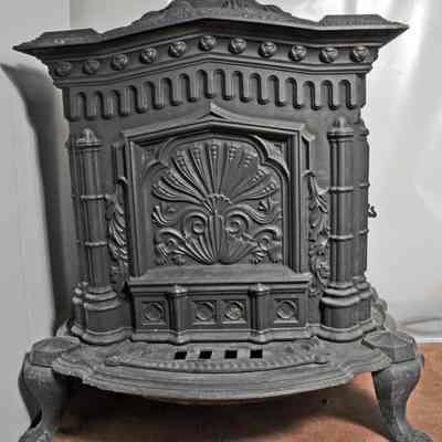 Rectangular, black, cast iron parlor stoveEntry/Object ID