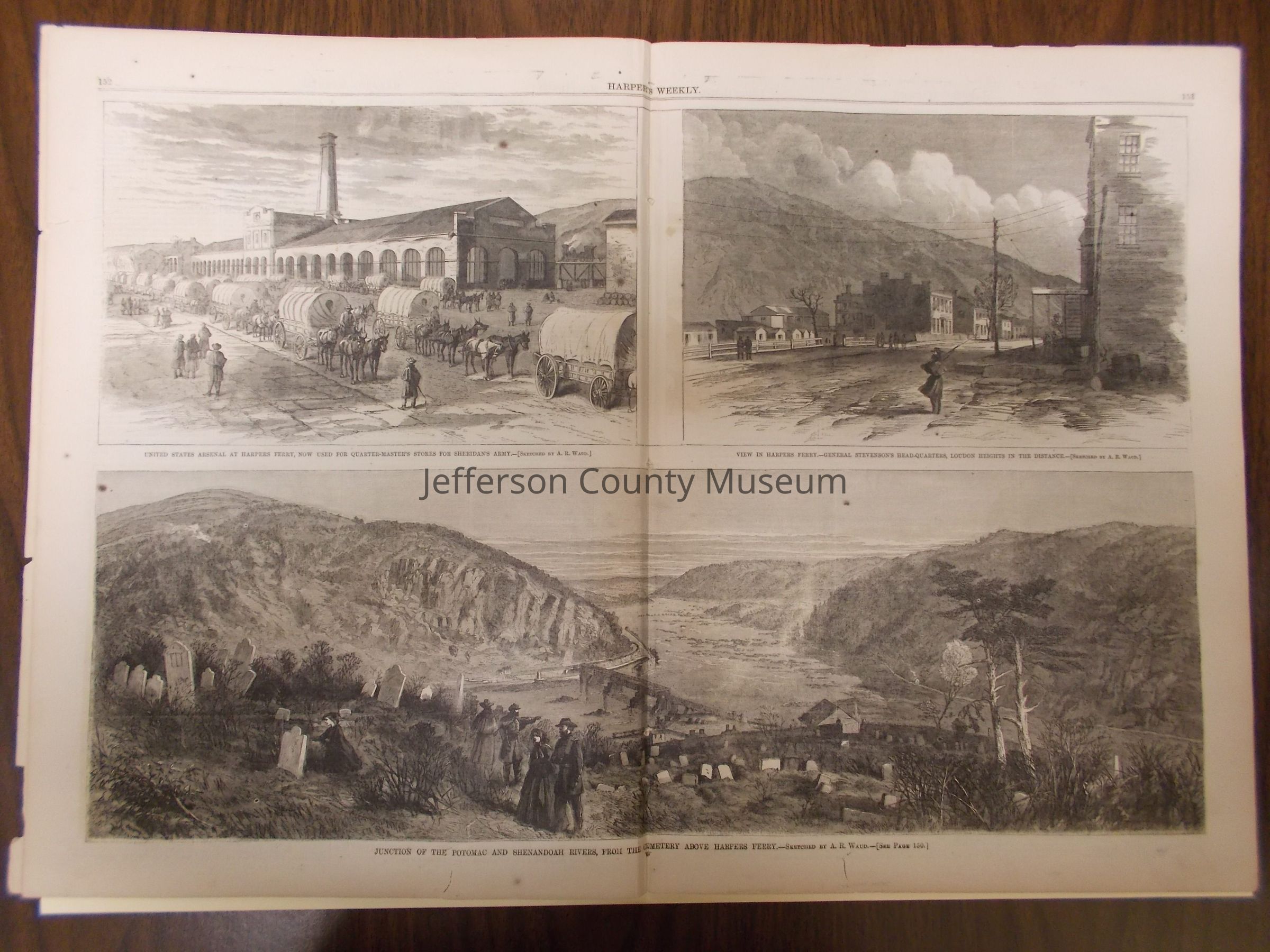 "Junction of the Potomac and Shenandoah Rivers, from the Cemetery Above Harpers Ferry.-- Sketched by A. R. Waud.-- [See Page 150.]", pg. 152-153.Acquisition