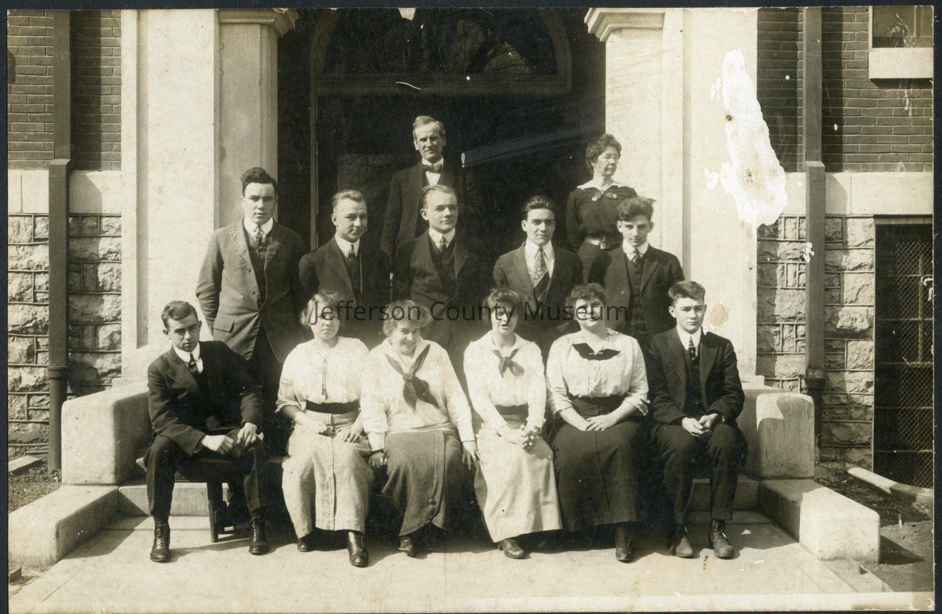 Charles Town Graded and High School photo, after 1912. Teachers: (Back row) Mr. Wright Denny, Miss Mary Campbell. Pupils: (center row) John Waters, Howell Brown, Logan Shutt, (front row) Edward Miller, Mary Painter, Julia Wynkoop, Hilda Moore, Katherine Baylor, Norvel Davis.Acquisition