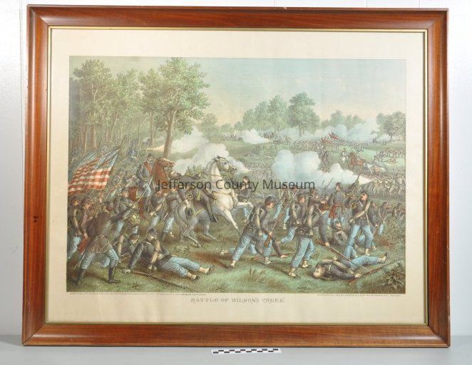 "Battle of Wilson's Creek, Aug. 10, 1861" Color, chromolithograph. Frame has been removed.