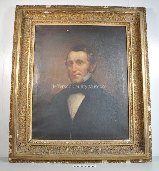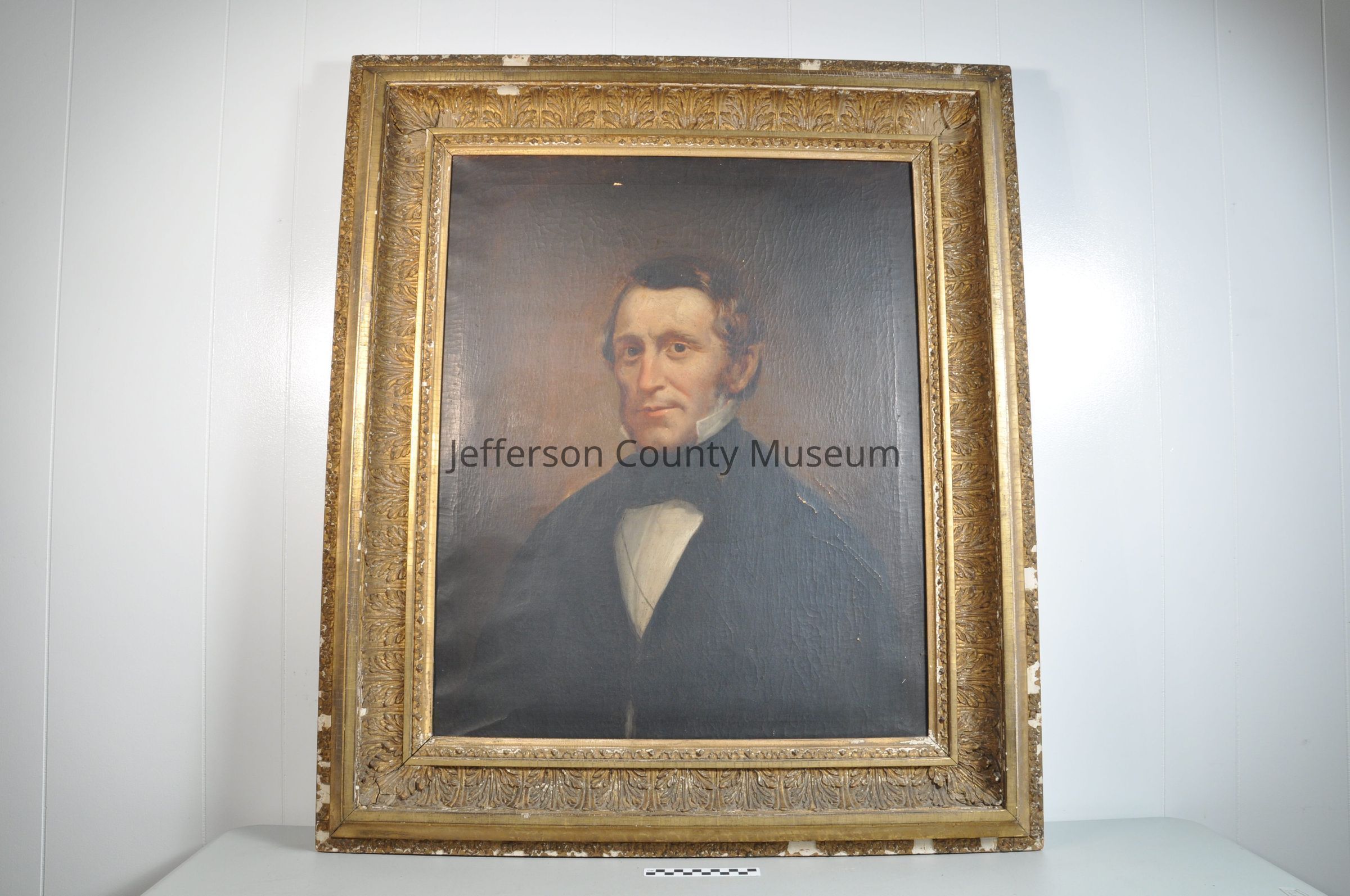 Photo of oil painting of Colonel Israel Robinson by Elisha Lee. Stamped on back of canvas is "Photographic Canvas Elisha Lee Patented May ?? Balt Md." Typed on the back of the frame is a card advertising Elisha Lee, Portrait Painter, and his patented photographic canvas.Acquisition