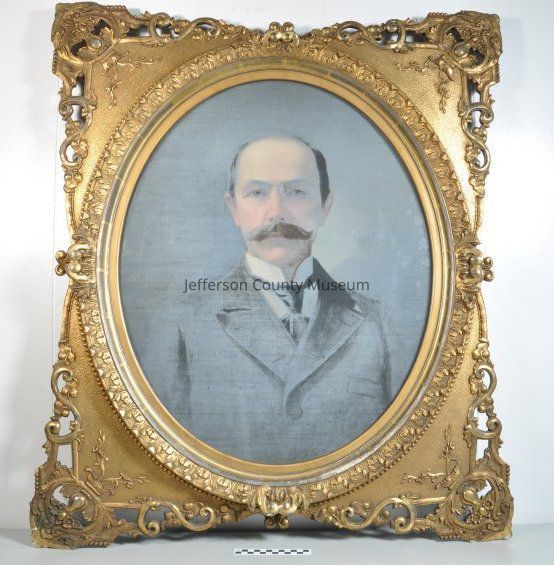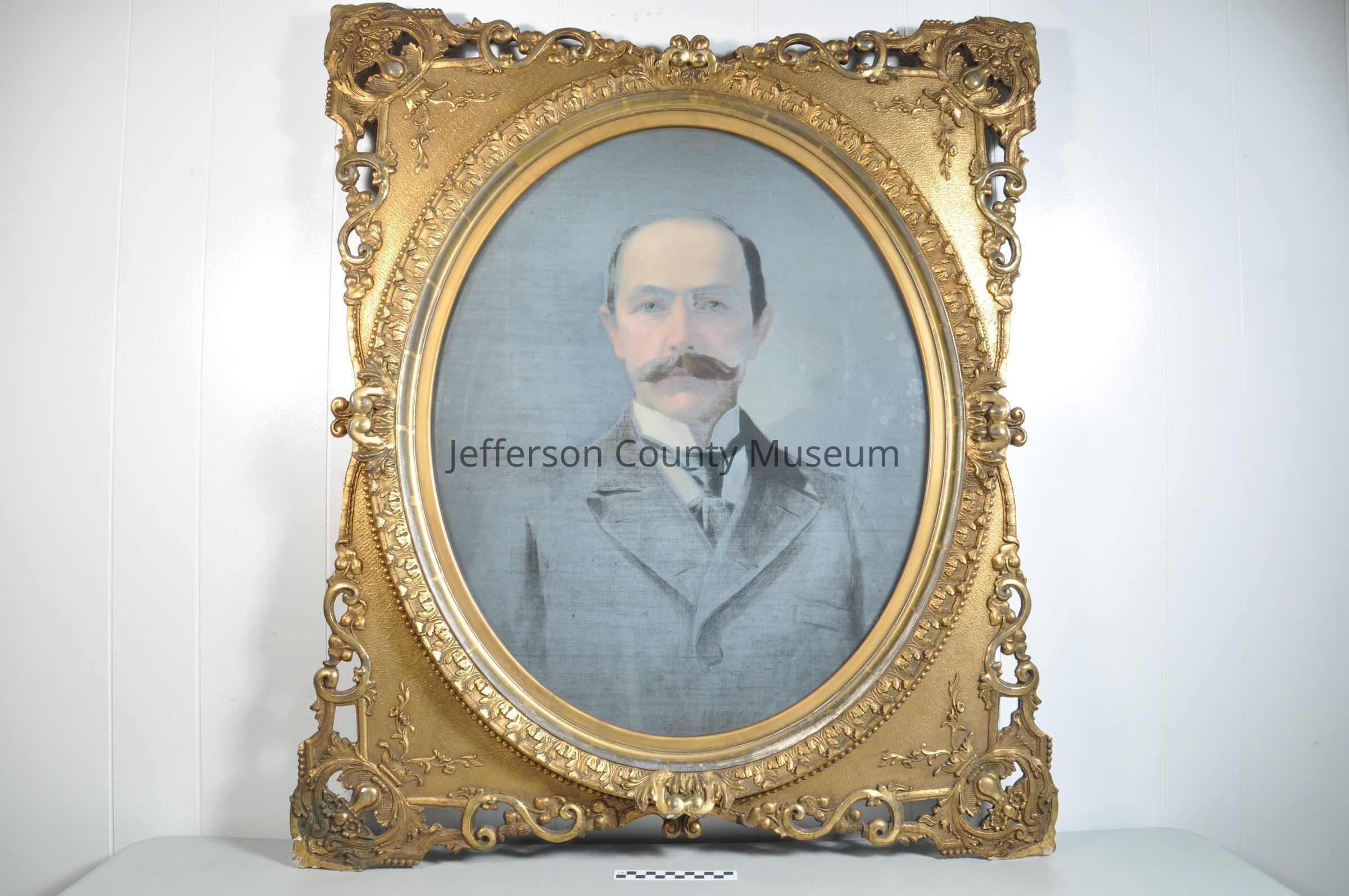 Portrait (perhaps a colorized photograph) of Braxton D. Gibson in ornate frame