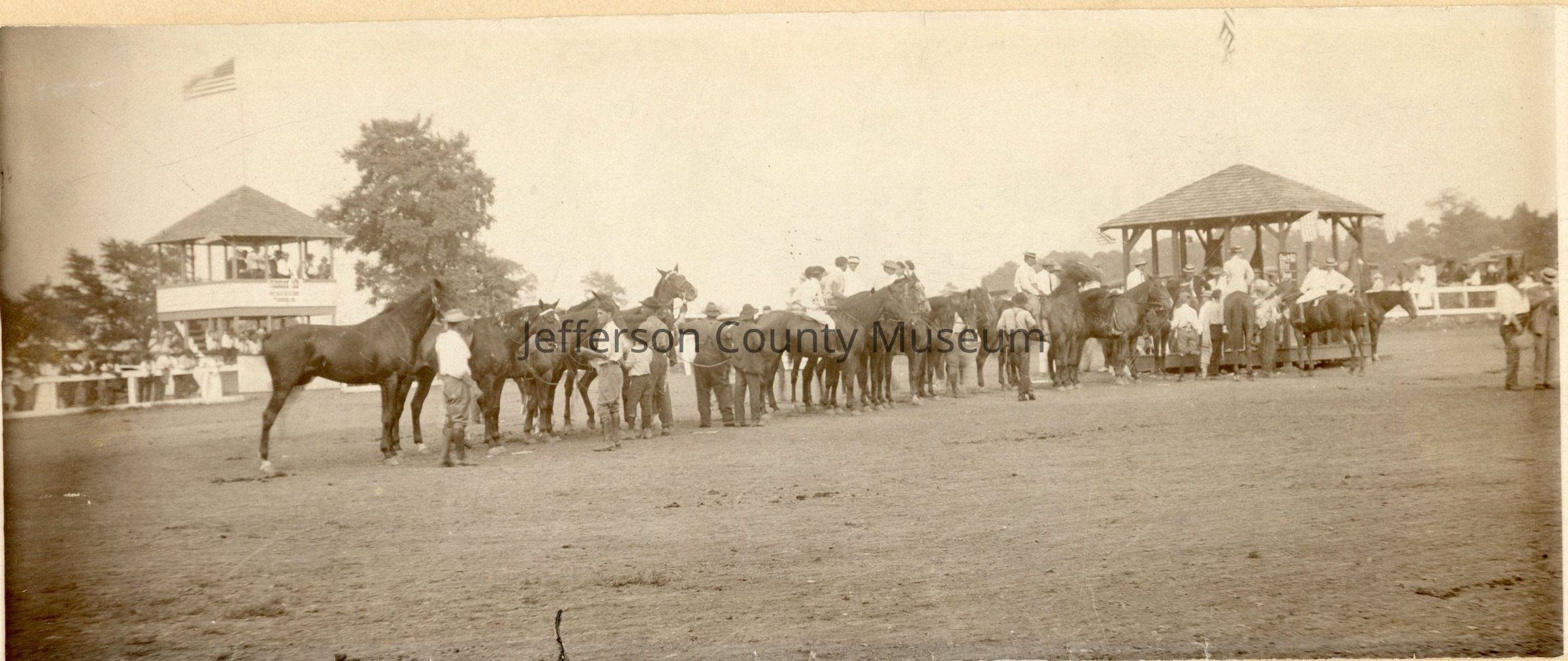 Horses, men and boys possibly at the Charles Town Horse Show c. 1914. Written on reverse "Brown".Acquisition