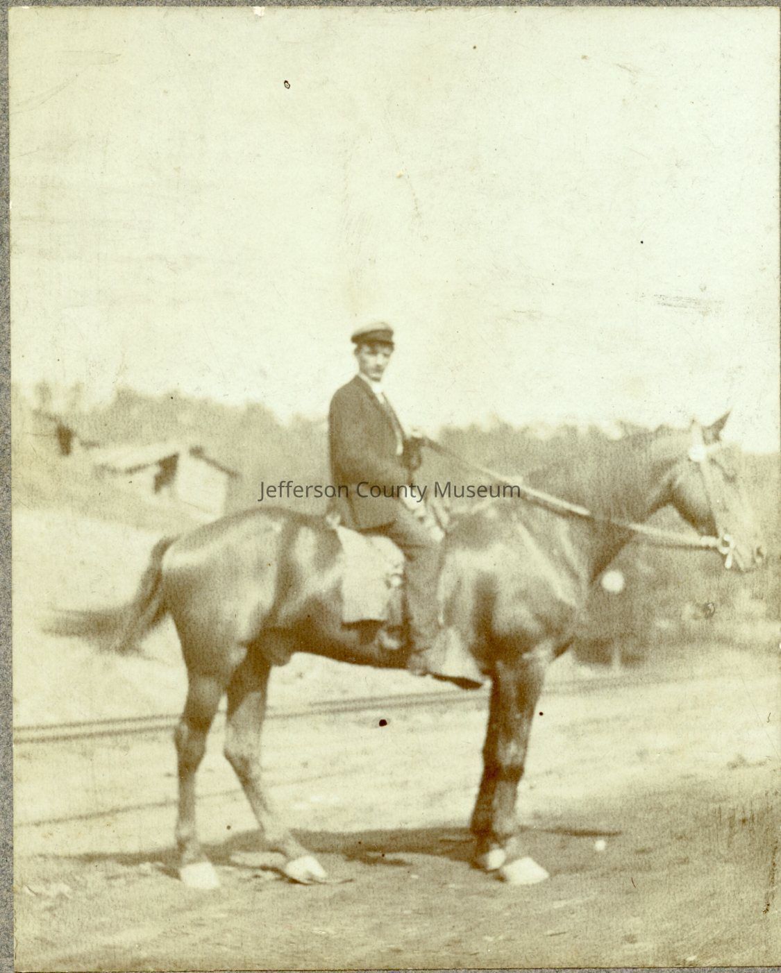 Chic Garney on a horse, 1910. Written on reverse "Taken at Oldtown Md, 1910, I was agent there on, Wm Railroad, A V Garney on "horse"."Acquisition