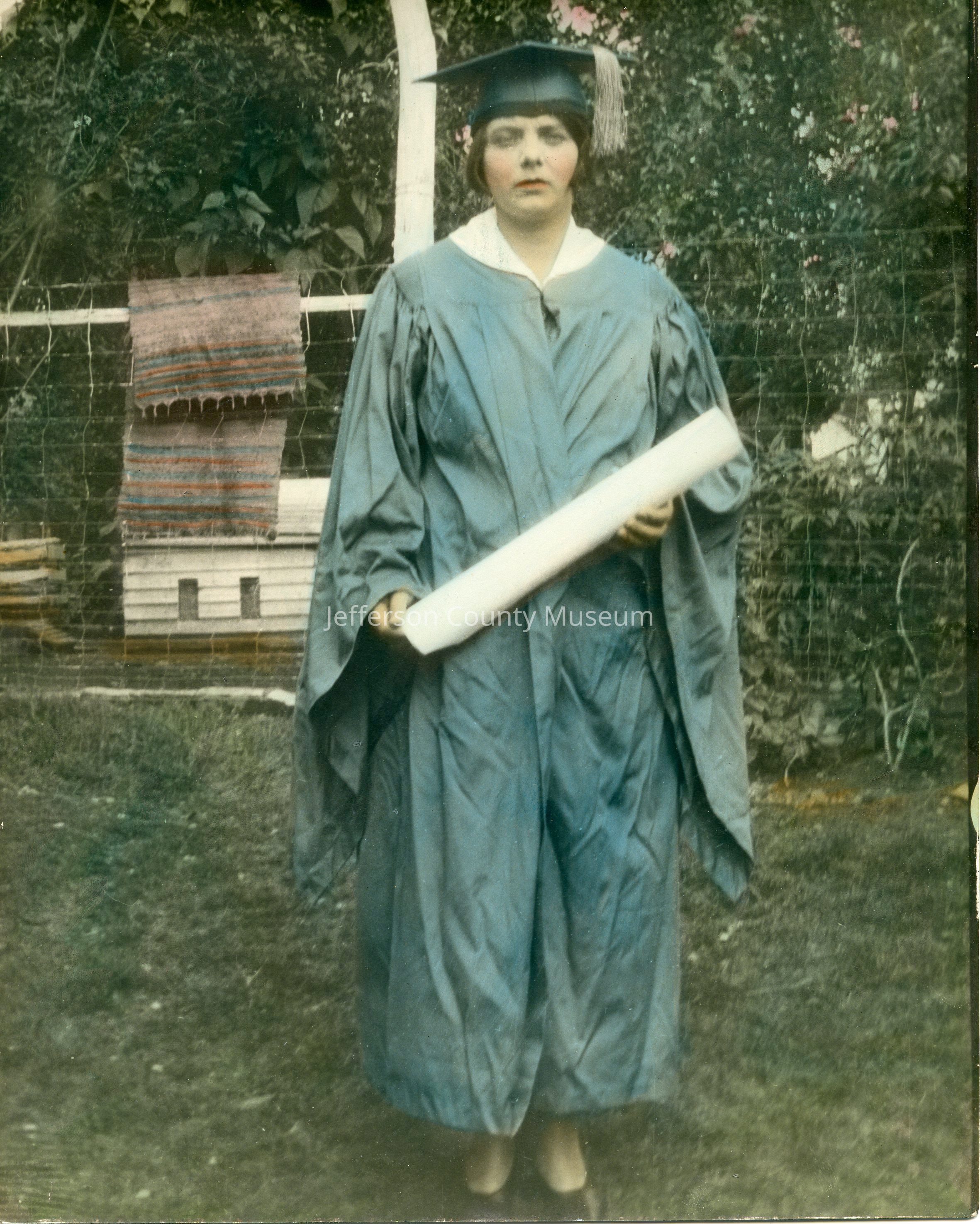 Marianna Johnson of Kabletown wearing a graduation cap and gown - colorized