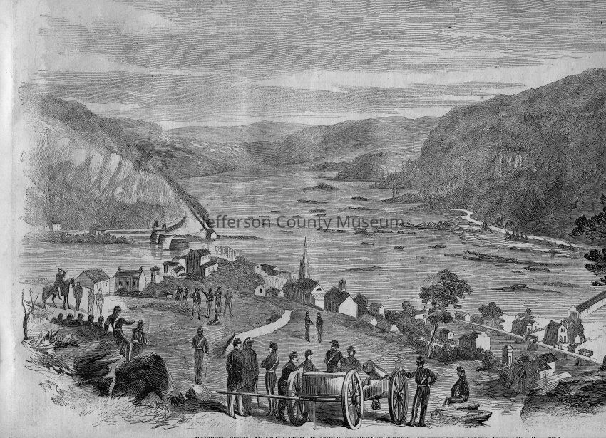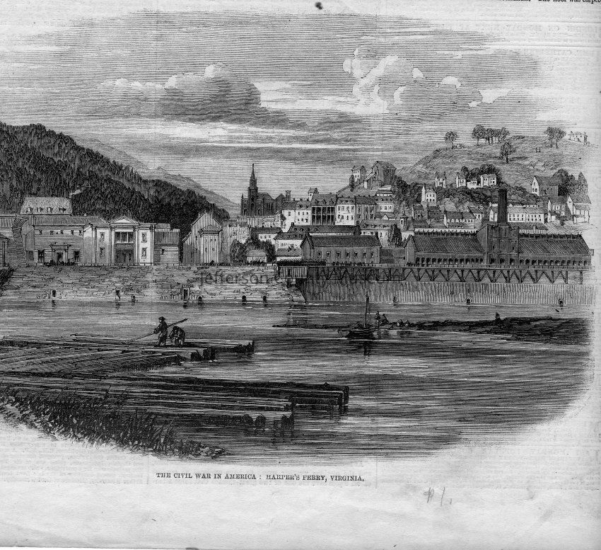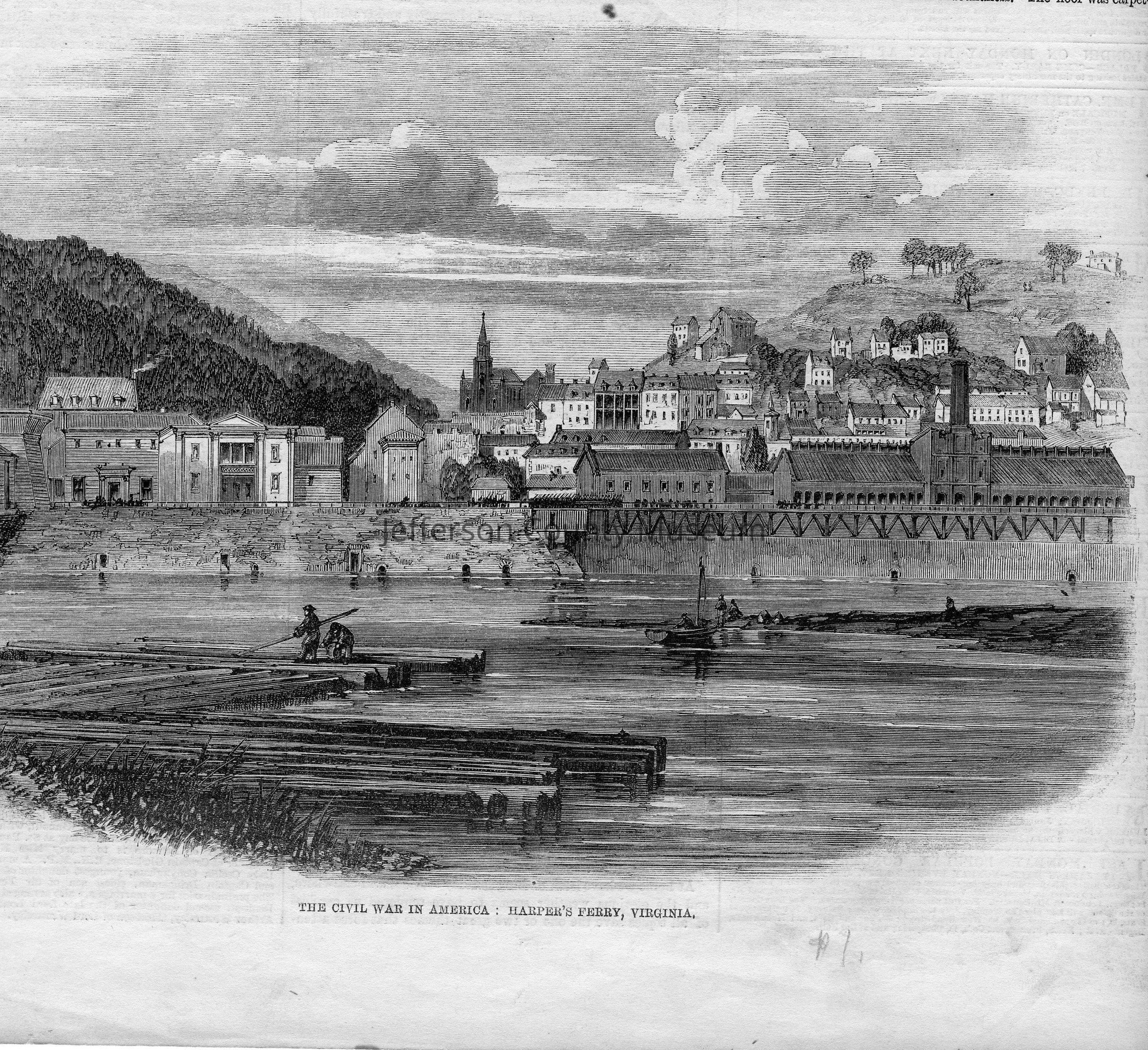 IMG3261-5: The Civil War in America, Harper's Ferry, Virginia, published in The Illustrated London News, June 22, 1861, pages 571-572; includes other illustration and news stories.