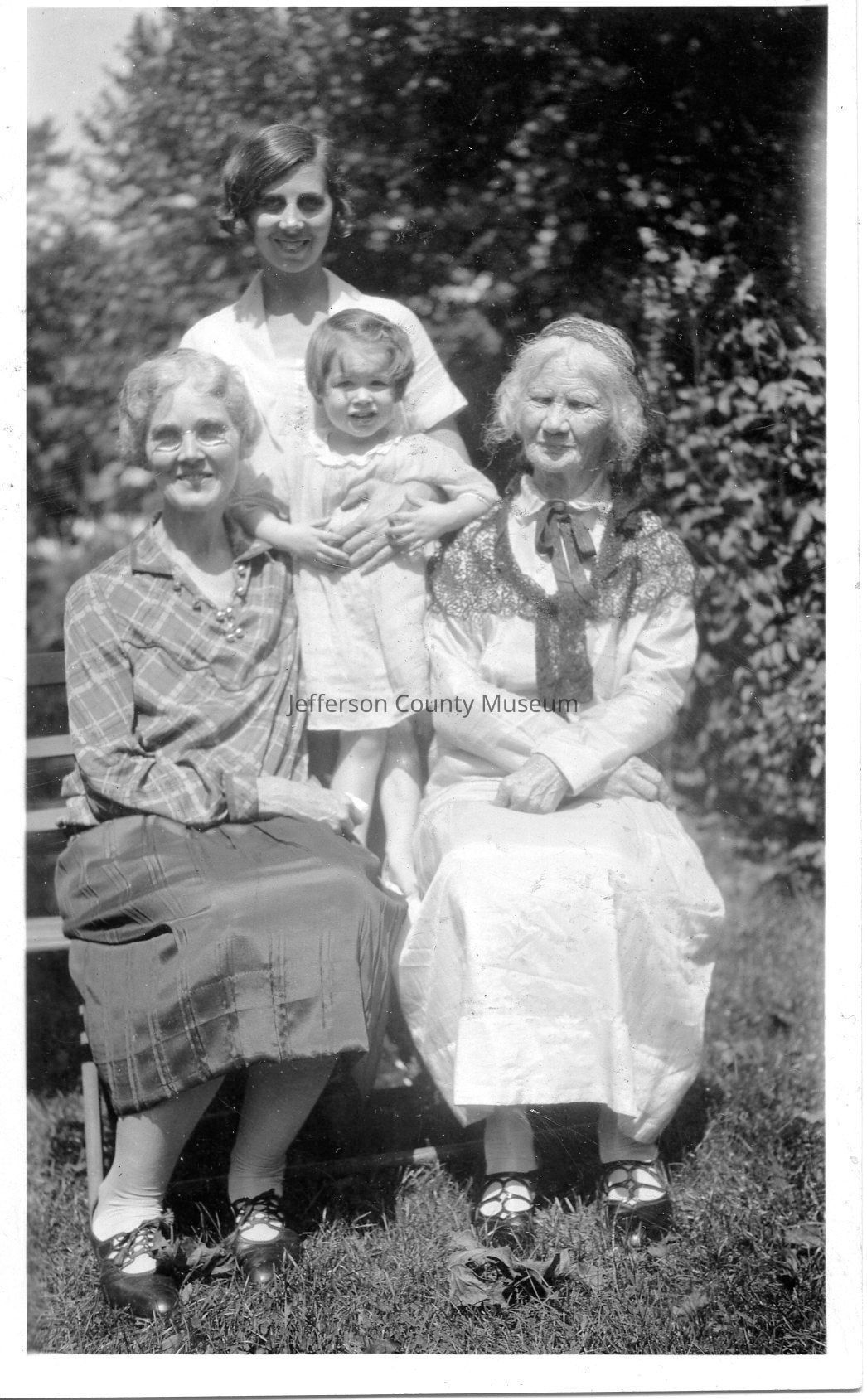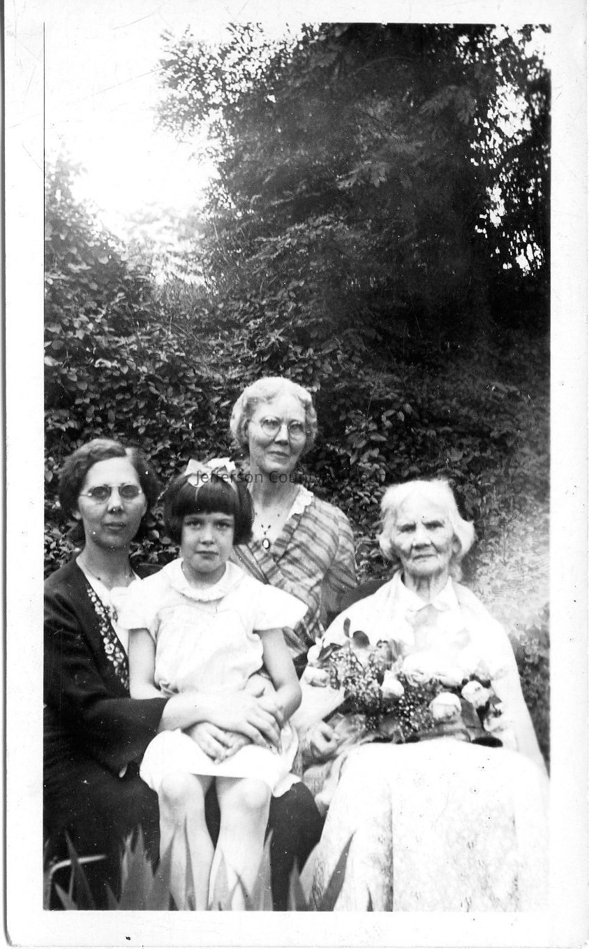 3) Photo: Four generations l to r: Celeste Brackett Newcomer, Mary Louise Newcomer Moore, Elizabeth Laura Moore, Louise Wood Brackett, (identified by donor) (IMG3273-3)
