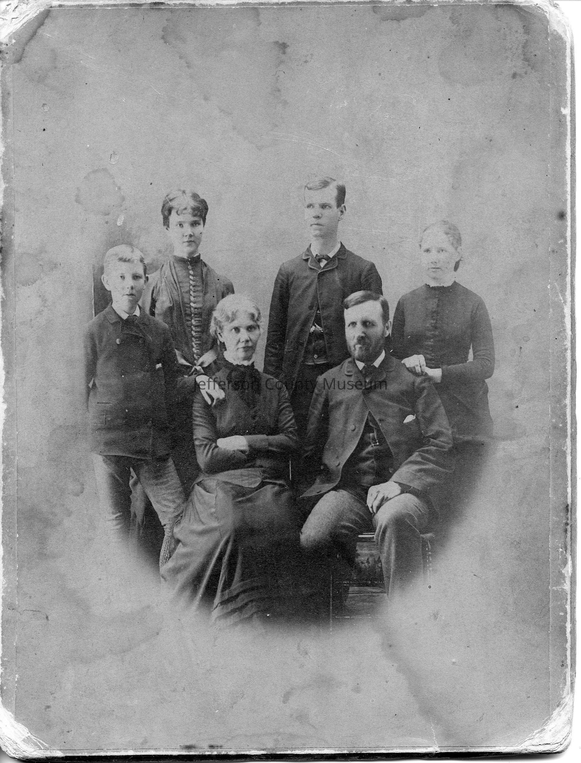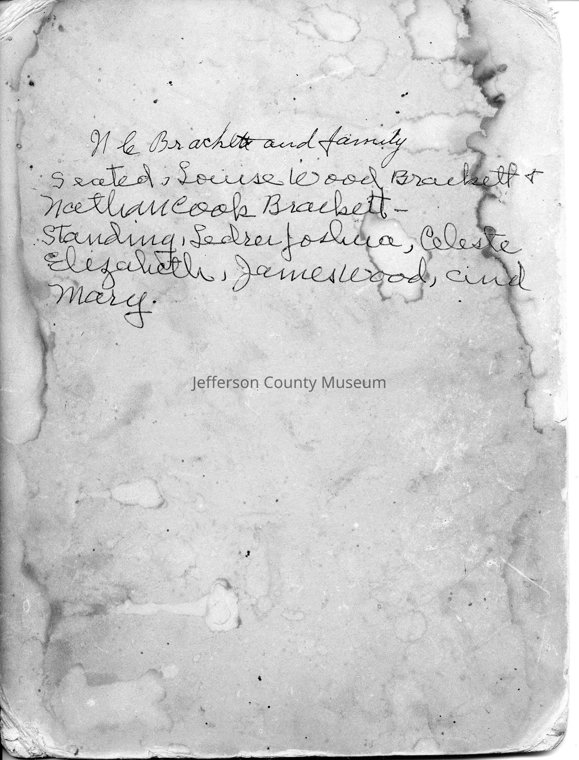 13) Photo: Brackett family-parents and 4 children Seated: parents Louise Wood Brackett and Nathan Cook Brackett; standing l to r: Ledru Joshua, Celeste Elizabeth, James Wood, and Mary (IMG3273-13)