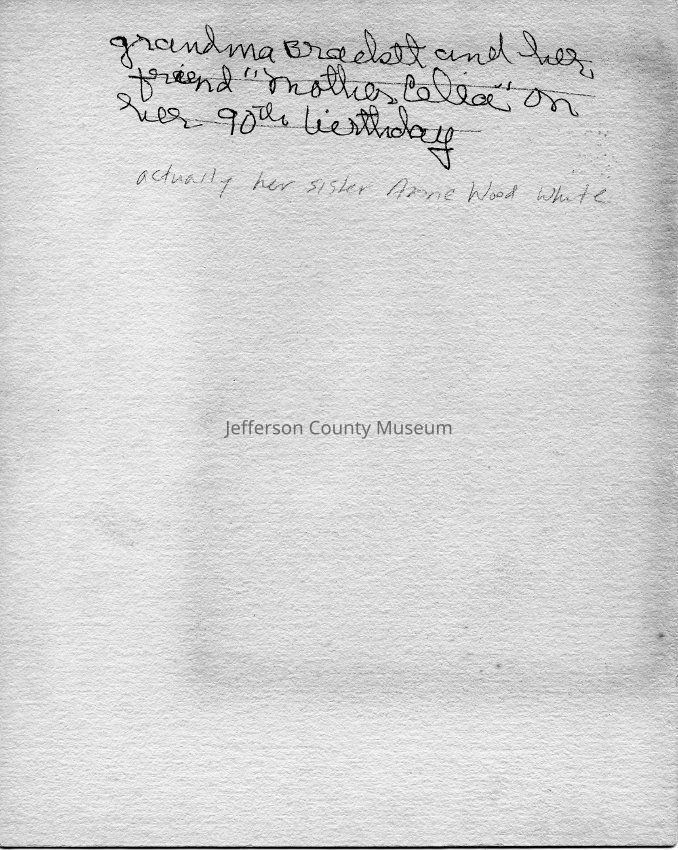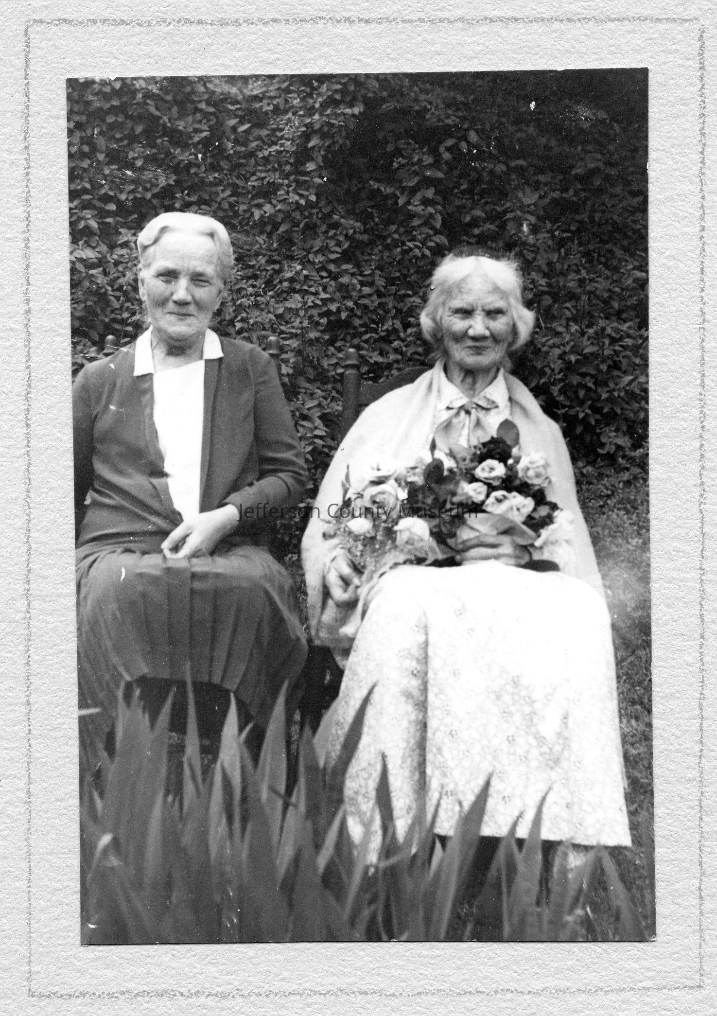17) Photo: Louise Wood Brackett's 90th birthday celebration, June 10, 1932 Anne Wood White (sister) and Louise Wood Brackett (IMG3273-17)
