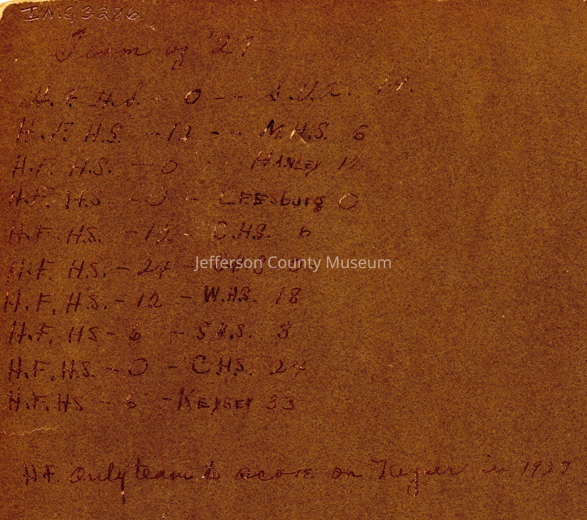 On back of photo is written scores from 10 football games in 1927 (see Media File)