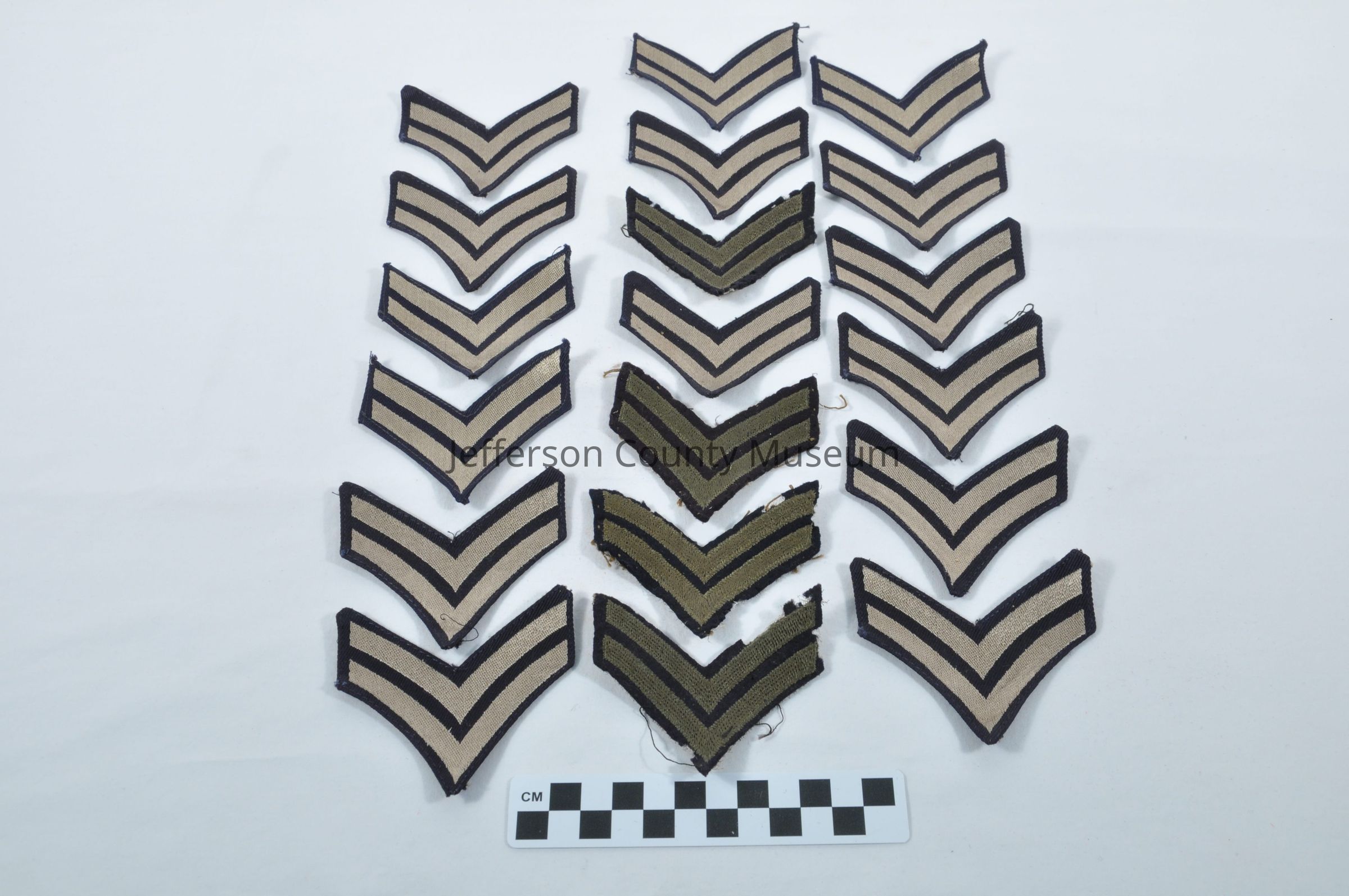 Set of 19 corporal's stripes. Four are OD green and 15 are khaki colored.Acquisition