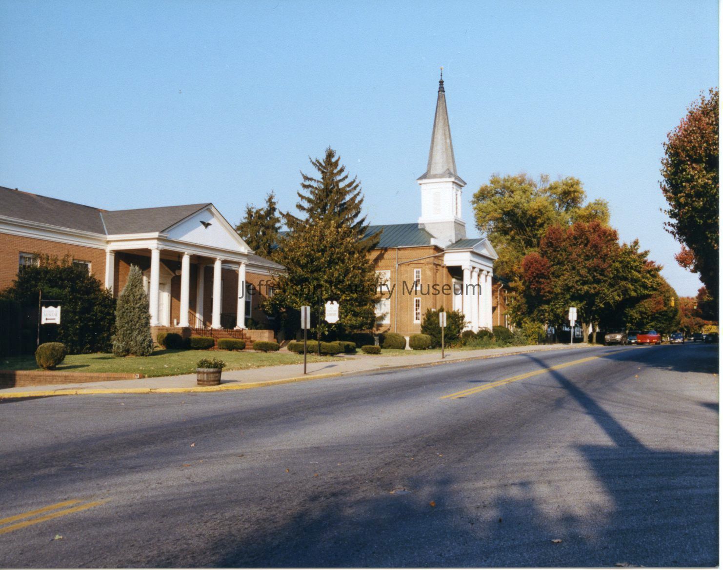 Charles Town Library and Charles Town Presbyterian Church in Charles Town, West Virginia, on November 1, 1999 (IMG3296-1)