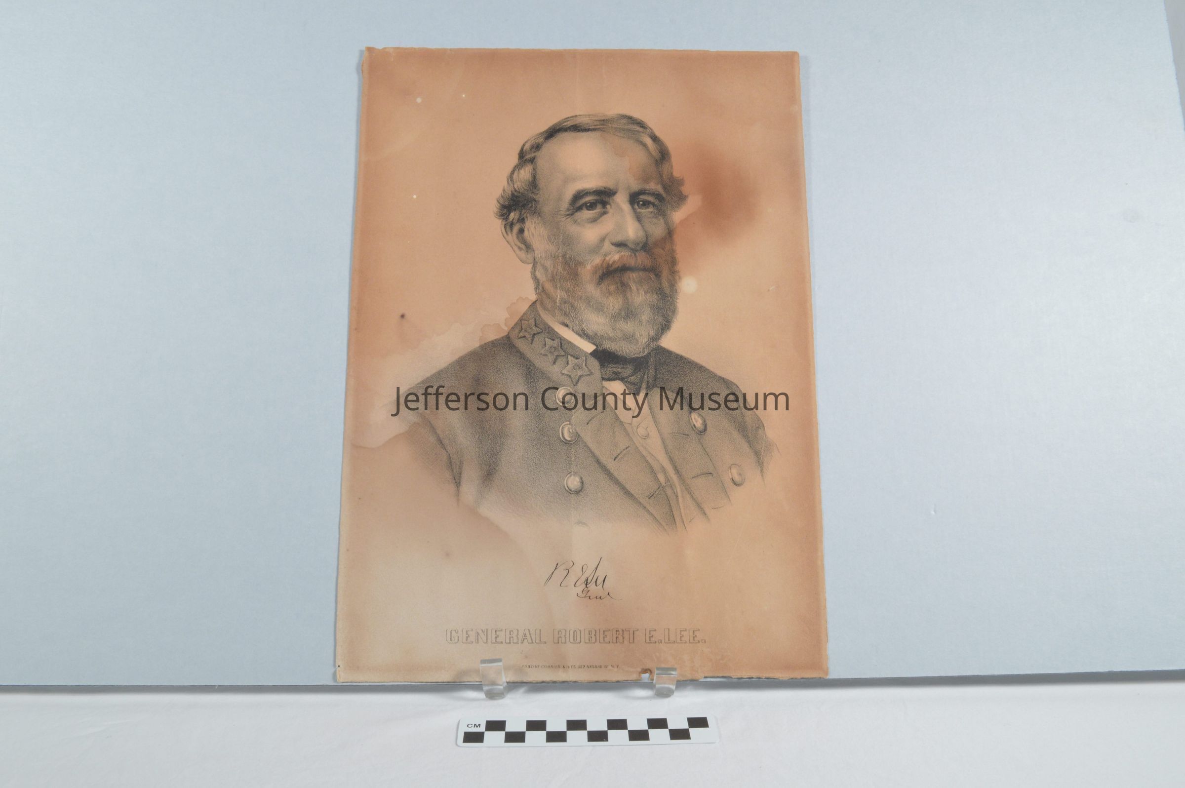 Currier & Ives print of bust of R. E. Lee, General Robert E. Lee with beard and wearing Confederate uniform.Acquisition