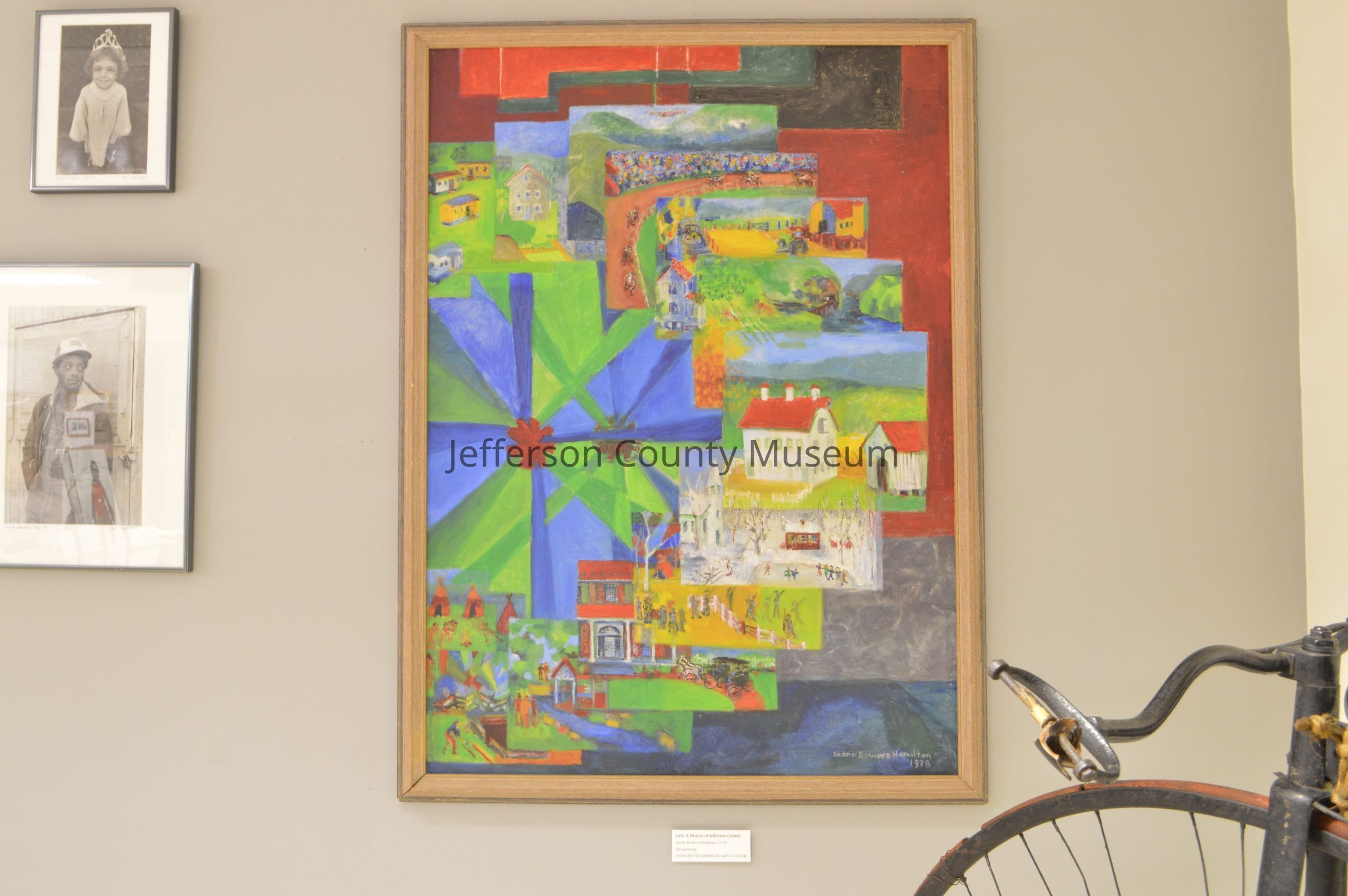 "Grit: A History of Jefferson County," by Leone Bowers Hamilton in 1978. Artist signature and date in bottom right corner of painting. Framed.