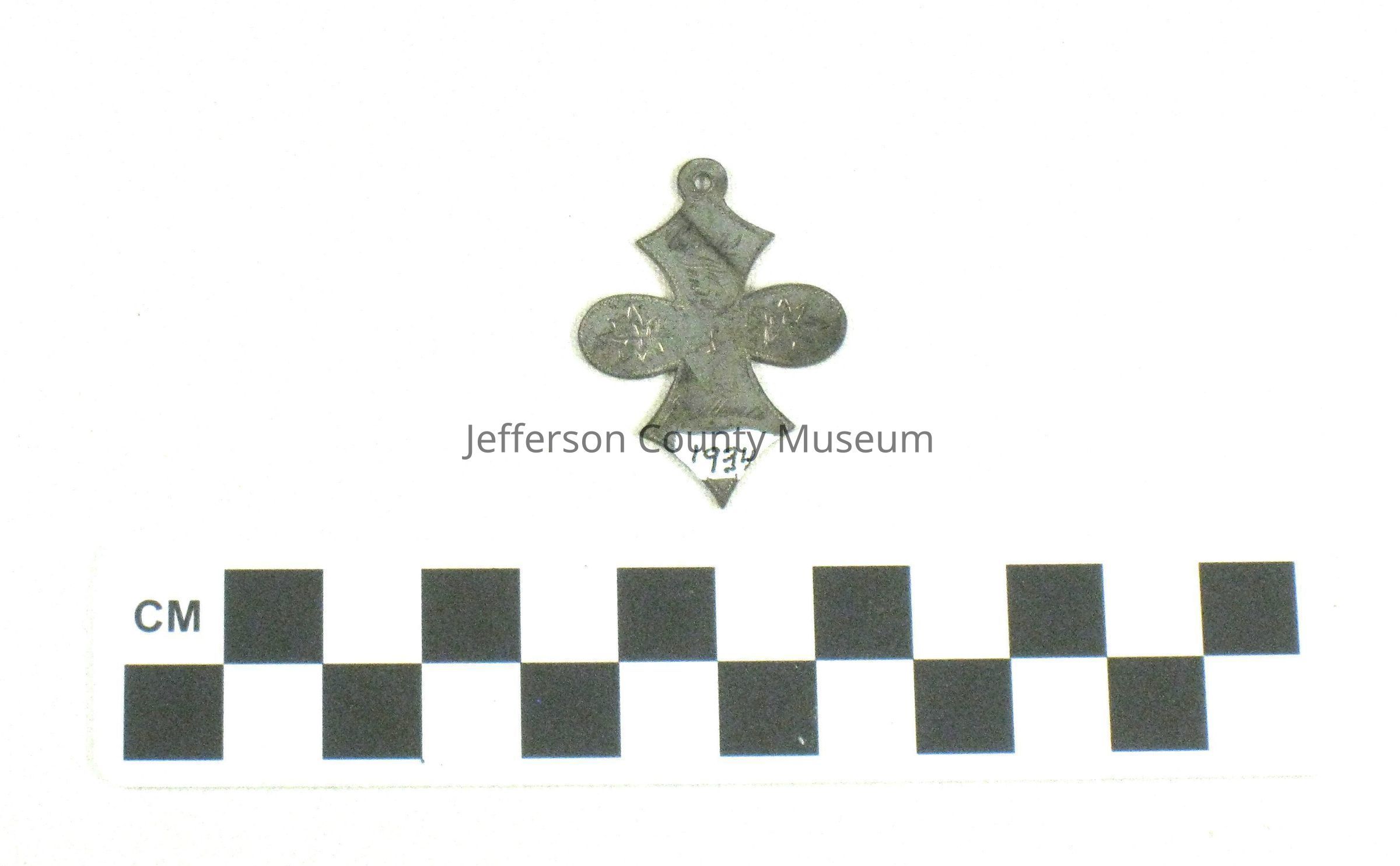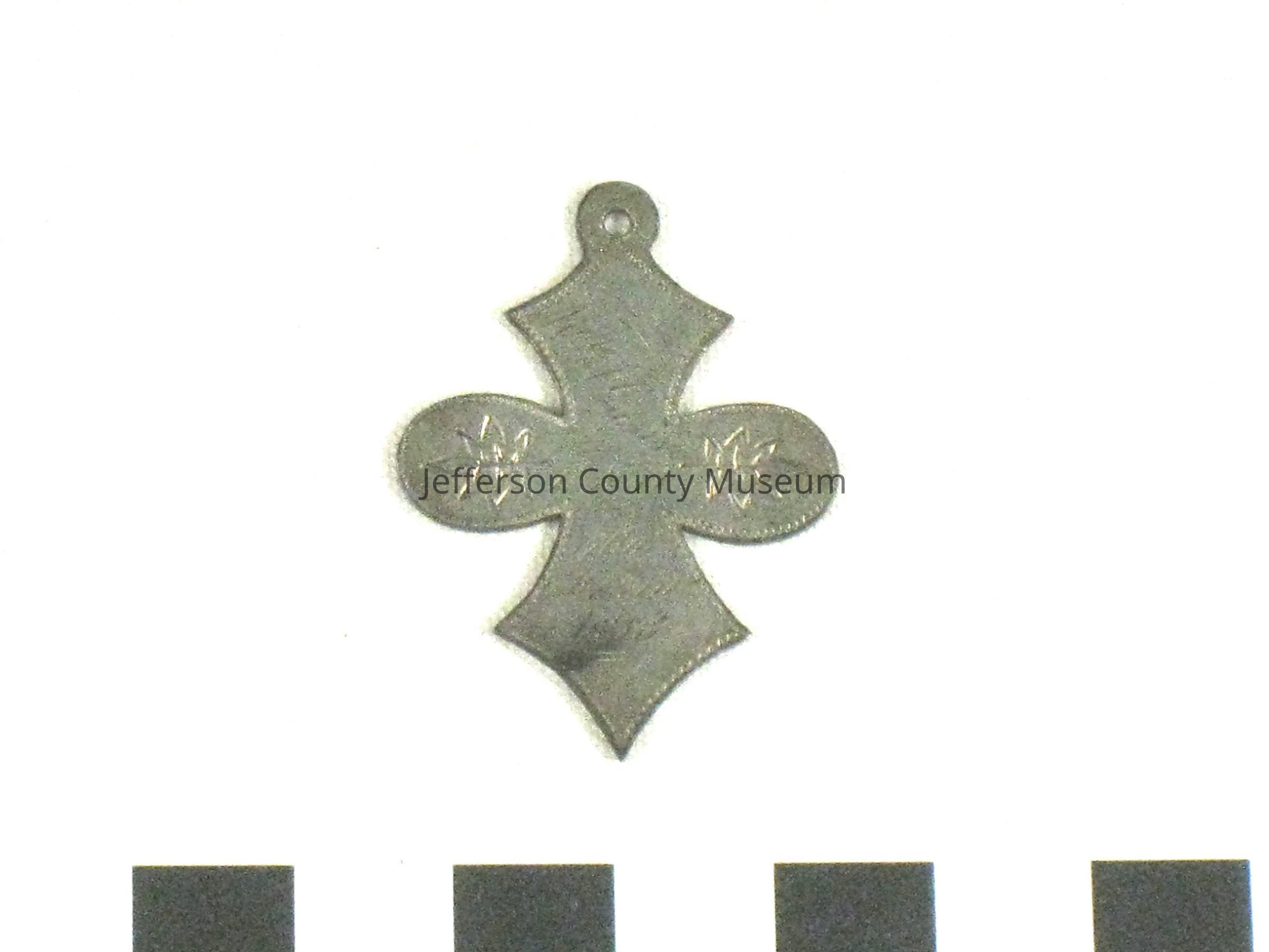 Silver medallion similar in shape to catalog number 1933 but slightly larger. On one side is inscribed in French script "Mlle. A. Gibson C.N.D. Villa Maria 1883". On either side are oak leaves. On the other side is an "A" in the center with two words above and below is "Excellence". On either side are oak leaves.Acquisition