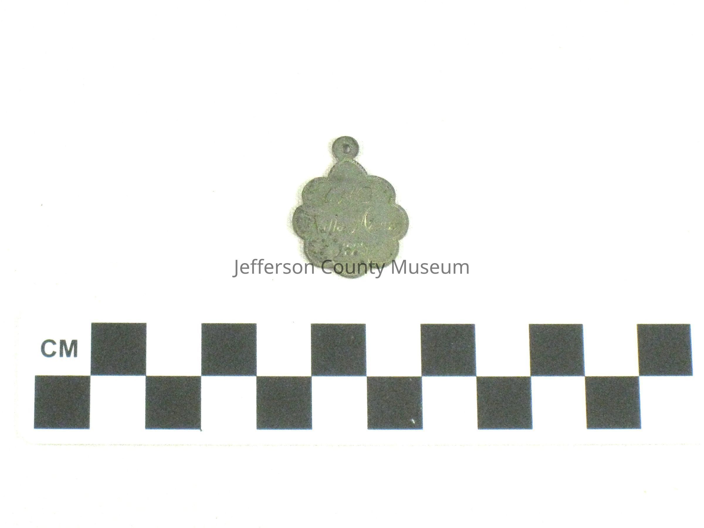 Round silver medallion with scalloped edges. Hole at top for hanging around neck. One side is inscribed "C.N.D. Villa Maria 1885". The other has "Conv. Frances".Acquisition