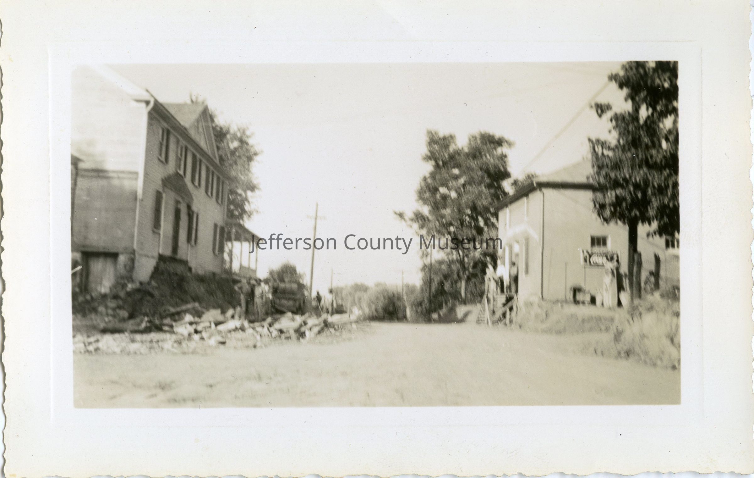 Buildings in Rippon (looking north on Route 340), during removal of rise in road at intersection of Withers-Larue Road and Route 340. Still standing today (1/24/2018) are Wilt Store (Jack & Mary Wilt) on right and Sylvester/Heskett residence across from it.