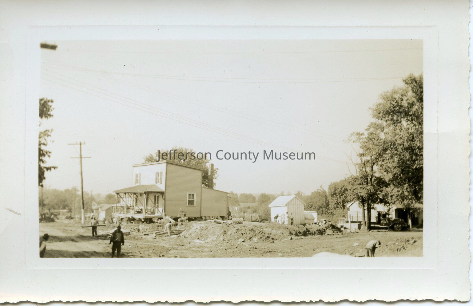 Buildings near southwest corner of intersection of Withers-Larue Road and Route 340 in Rippon during removal of rise in road on 340 at the intersection.