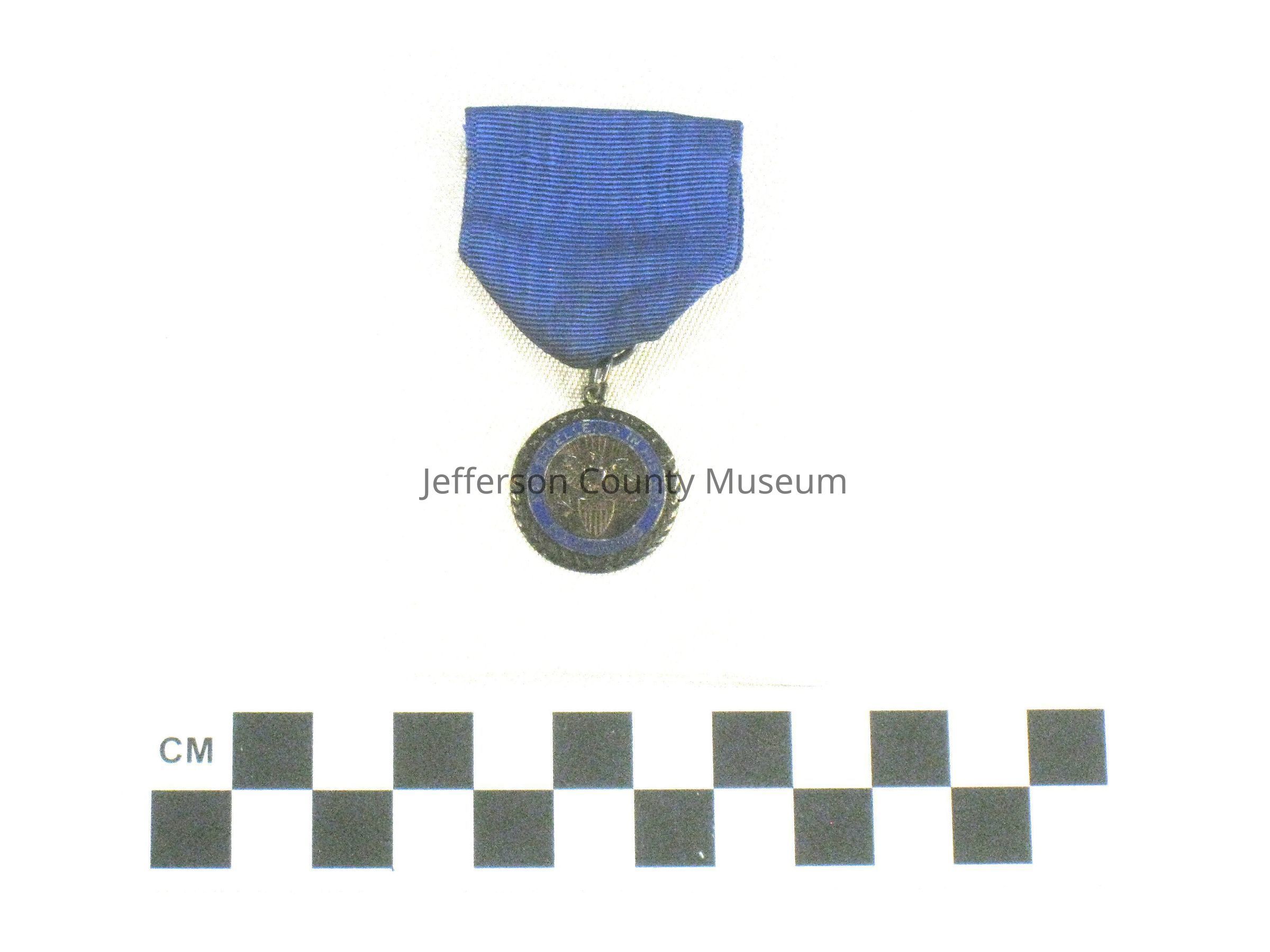 Medal with dark blue ribbon aboveEntry/Object ID