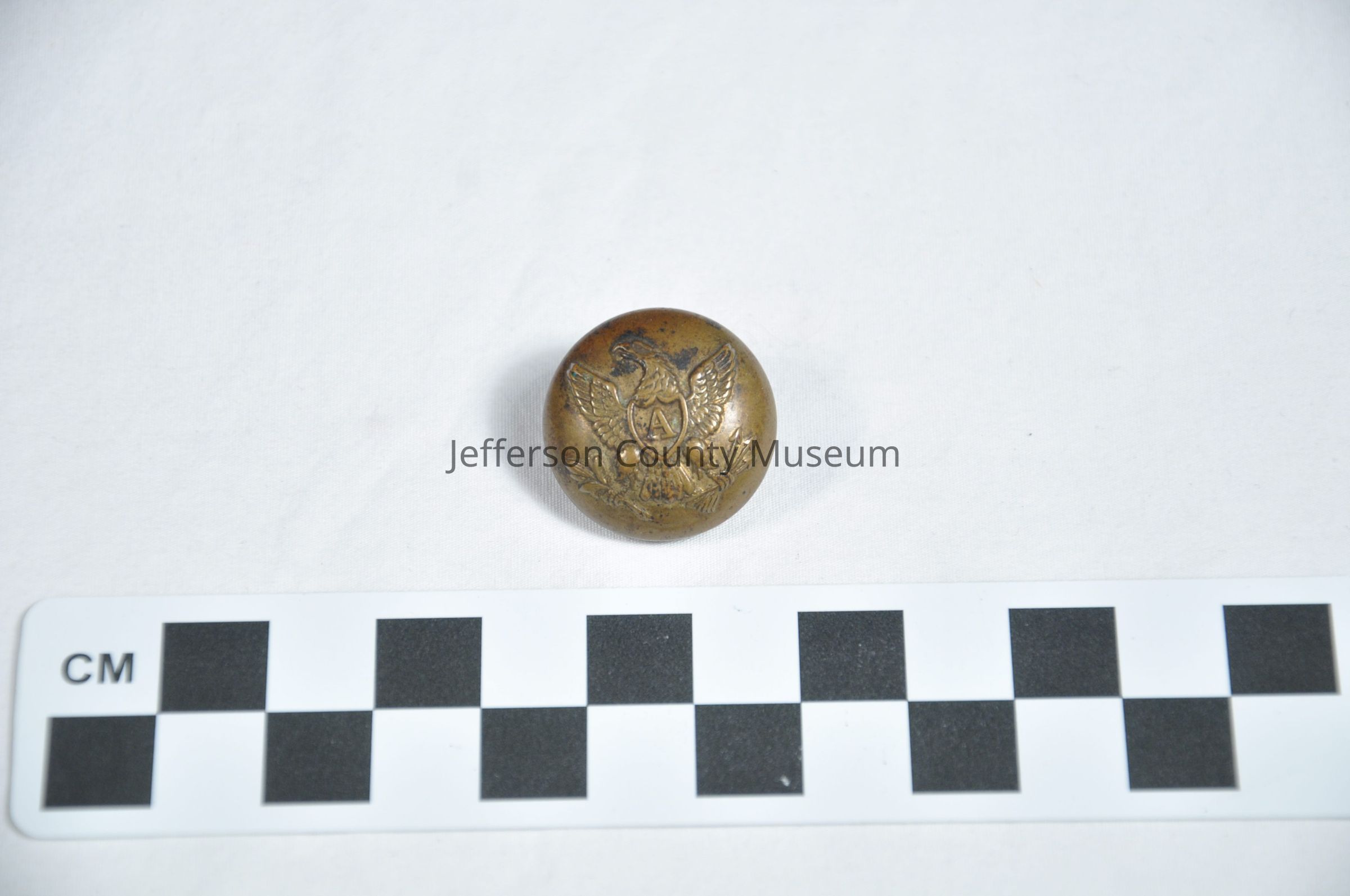Civil War U.S. artillery button with eagle with outspread wings and "A" on shield on breast. On back is "SCOVILL MF'G. CO, WATERBURY". Loop on back.Acquisition