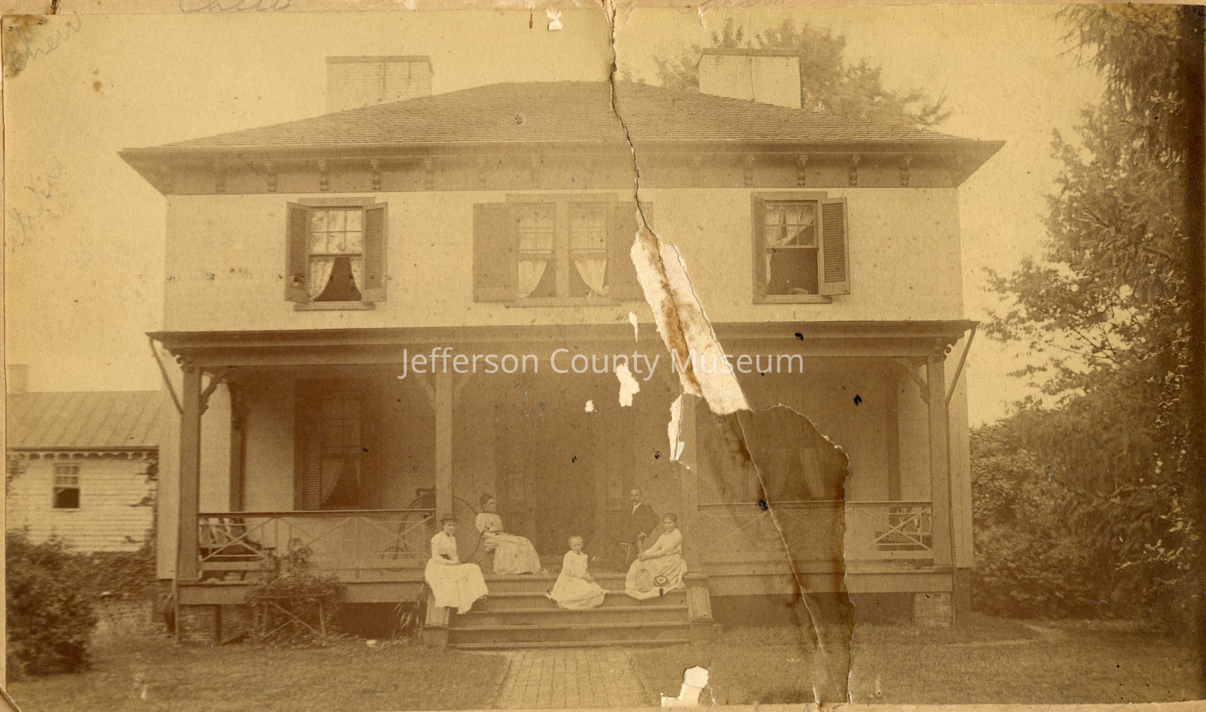Colonel Roger Preston Chew and family on porch of George Street house, c. 1900, before tower added on right side.