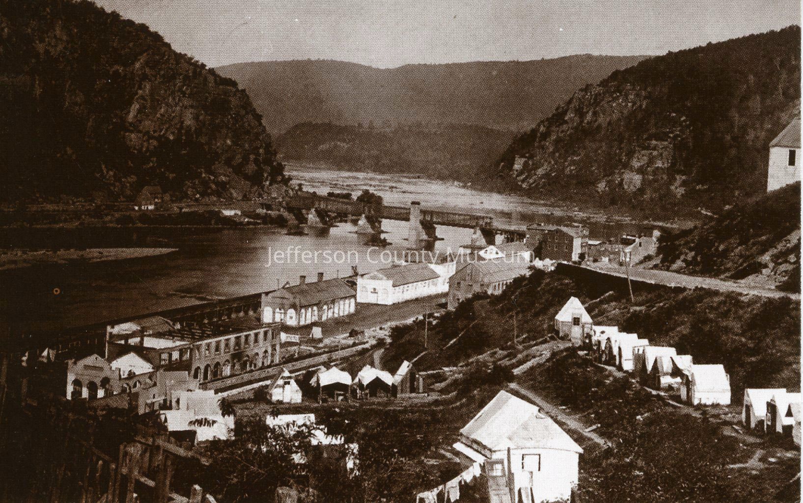 Civil War-time Harpers Ferry with the burned-out armory buildings.Acquisition