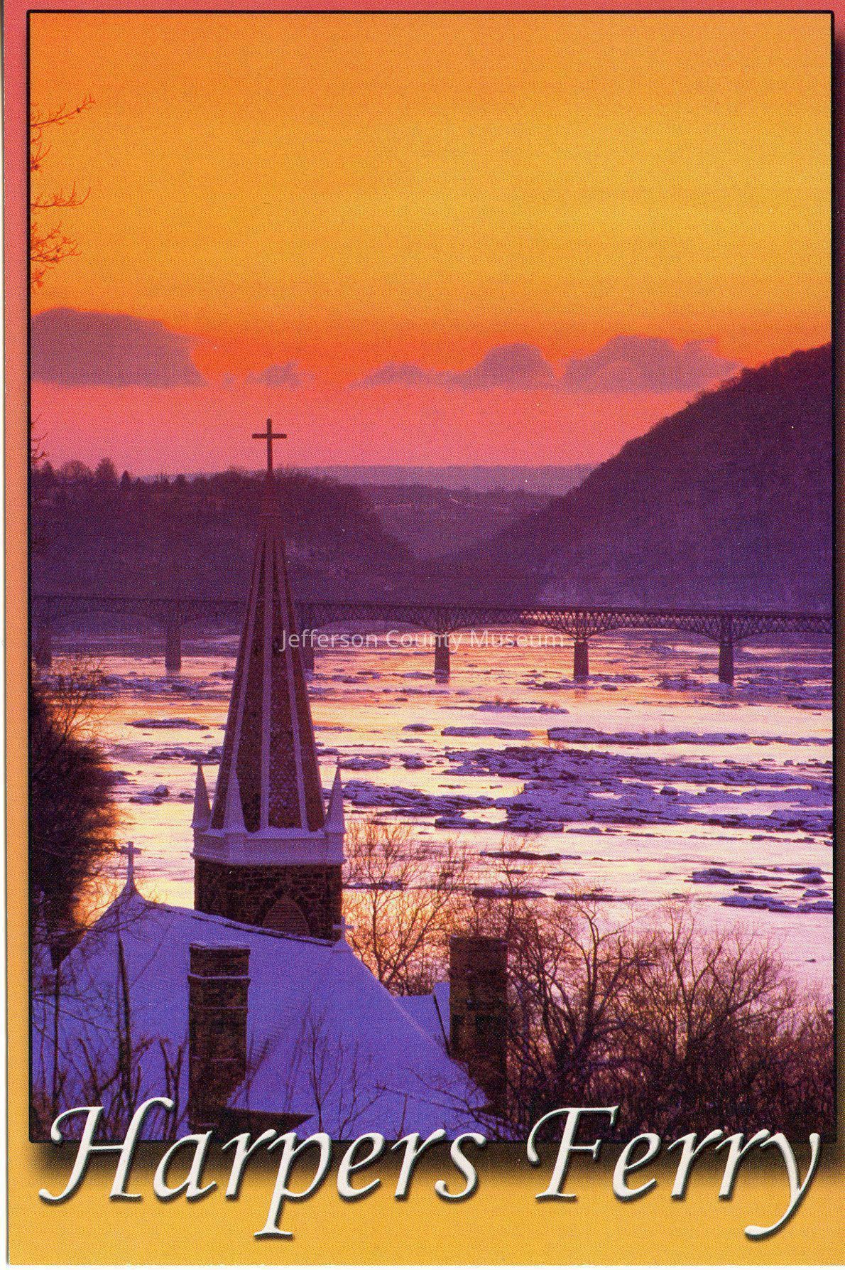 Harpers Ferry at sunset; taken from Jefferson Rock, looking across St. Peter's steeple toward the gap.Acquisition