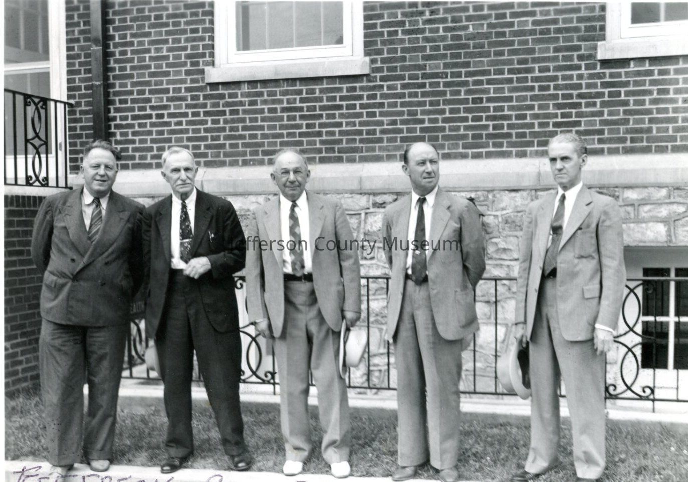 Jefferson County Board of Education, 1940-41. Left to right - Gilbert Everett Perry, President, Harpers Ferry; Harry Lee Lyne, Shepherdstown; Herbert Charles Miller, Kearneysville; Harry Graham Moffatt, Rippon; Melvin Talbot Strider, Charles Town.Acquisition