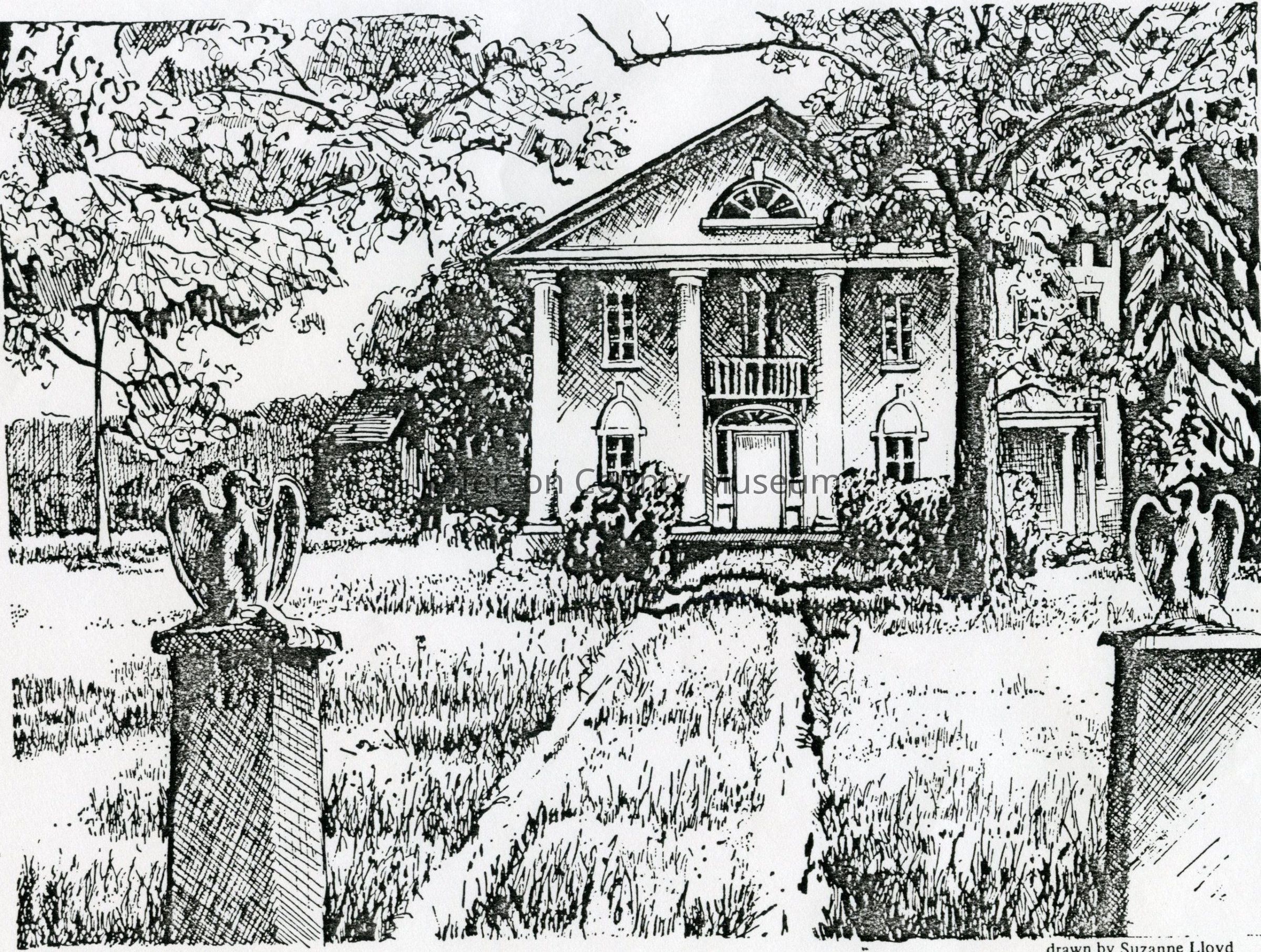 Pen and ink drawing of Sam Michael's home near Zoar from a 1982 Kiwanis calendar.Acquisition