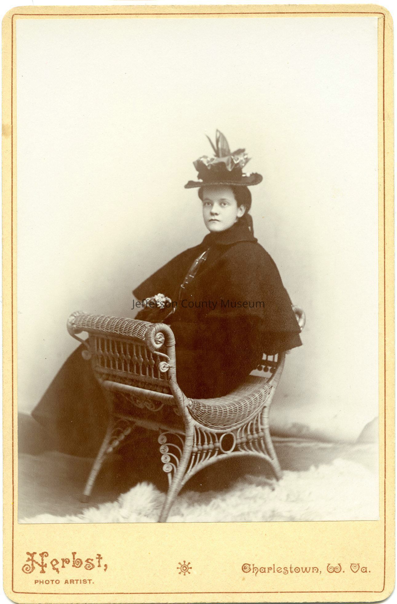 Anne Lloyd Baylor, seated on rattan or wicker bench, age 15, 1897. Photograph taken by Herbst, Photo Artist, Charlestown, W. Va. Anne Lloyd Baylor was a sister of Robert Matson Baylor.Acquisition