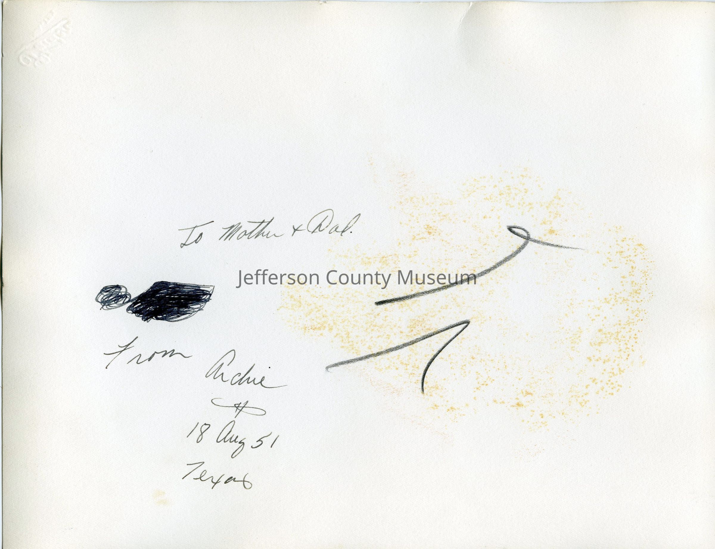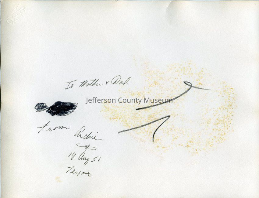 Archie B. Smith in U.S. Army Medical Corps uniform with Private First Class patch and chevron on sleeves. Handwritten on reverse is "To Mother & Dad, From Archie, 18 Aug 51, Texas".