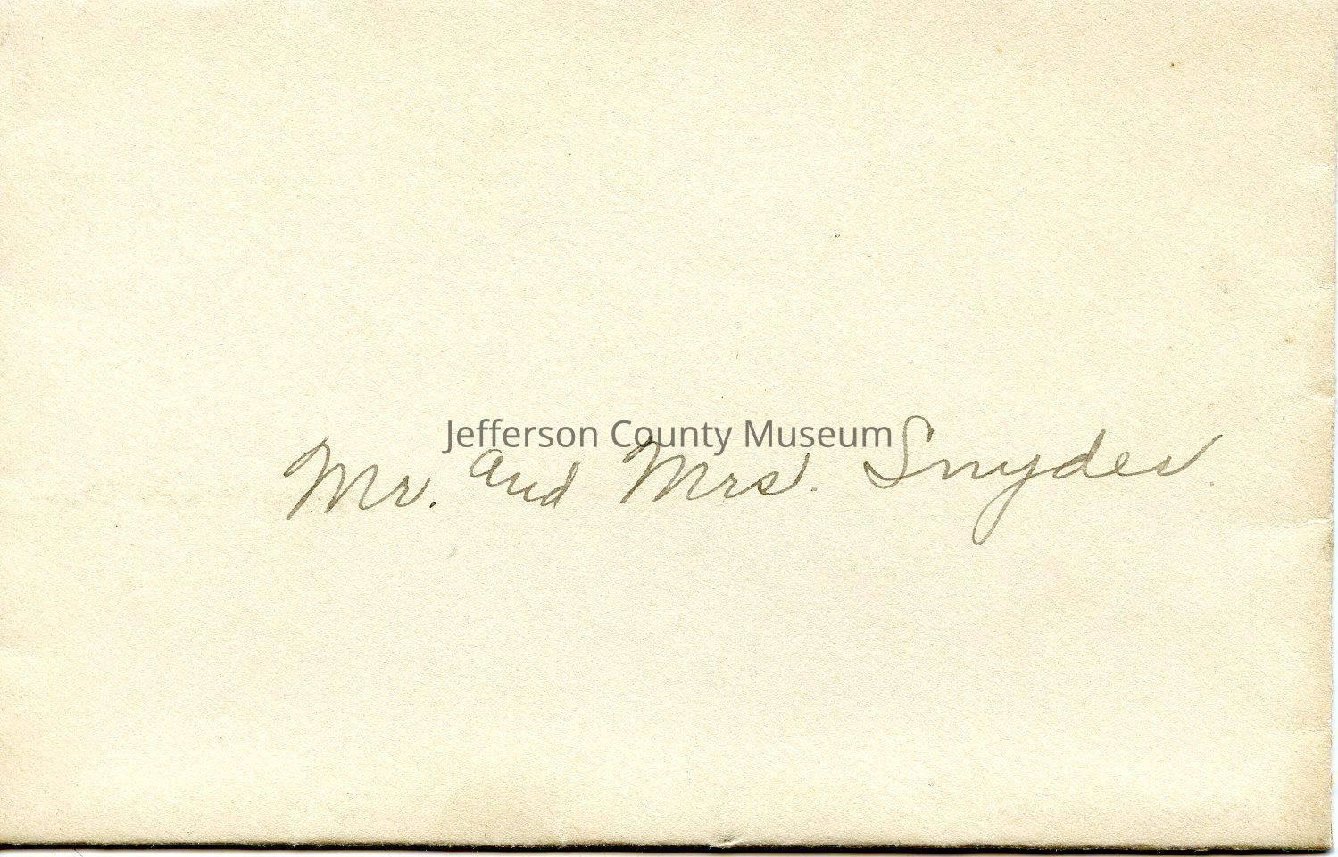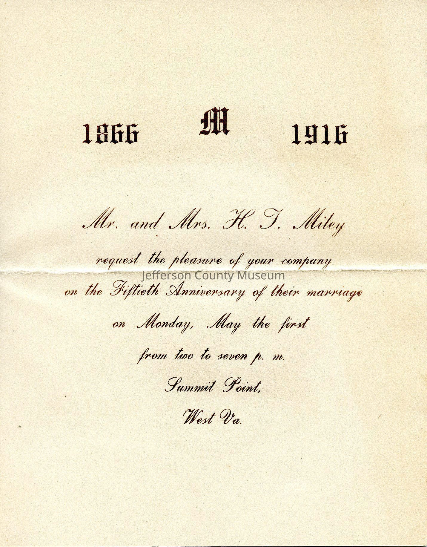 Invitation to attend the 50th wedding anniversary of Mr. and Mrs. H. T. Miley on May 1, 1916, in Summit Point, West Virginia. (82-1) Envelope, addressed to Mr. and Mrs. Snyder (82-2).Acquisition