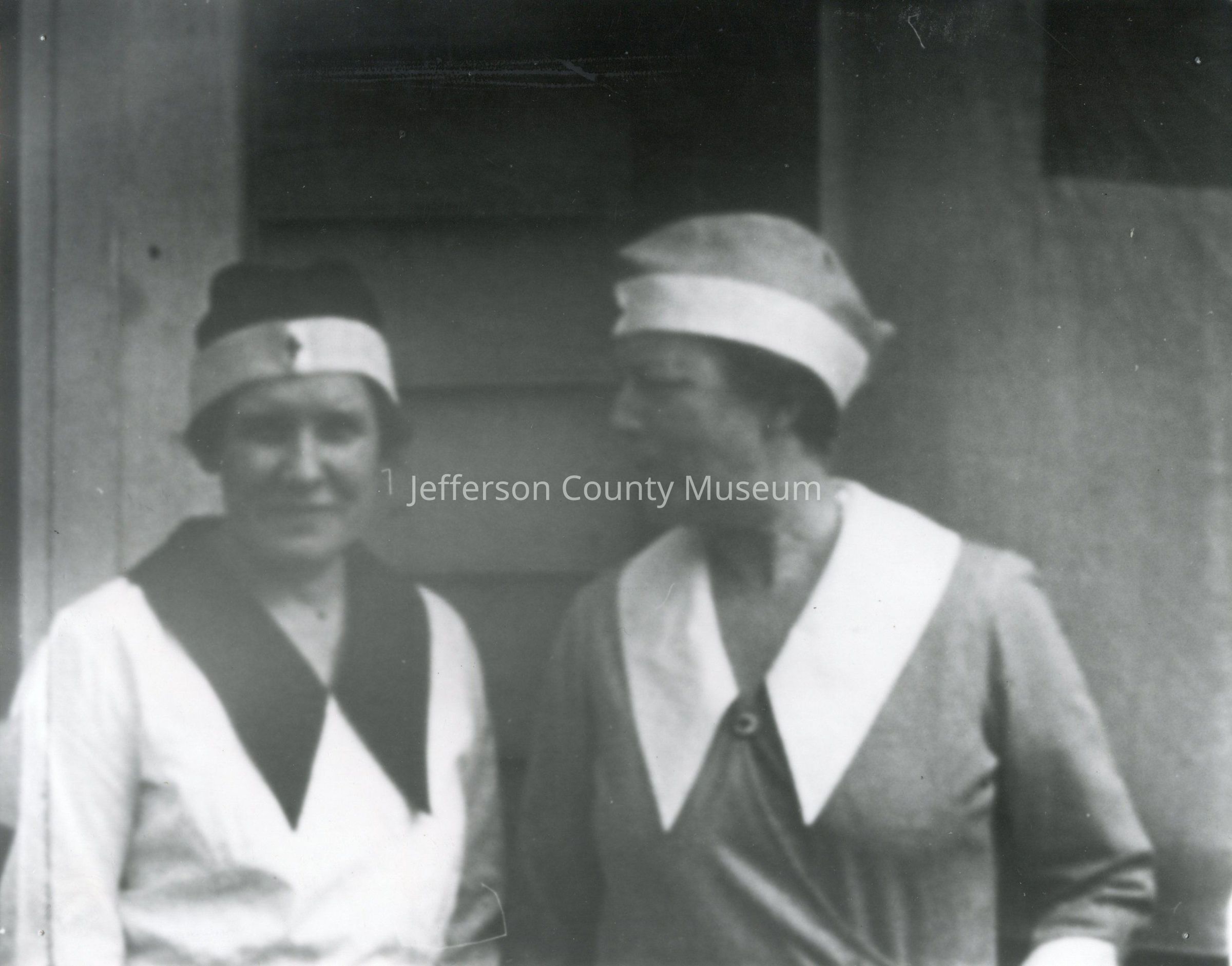 Two Red Cross volunteers, Mrs. Phillip Nelson and unidentified woman.