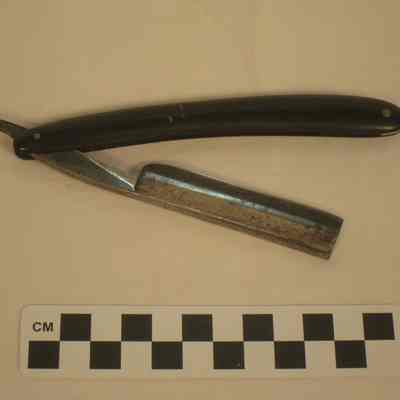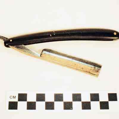 Razor with dark brown plastic or composite handle. VERY SHARP!! On shank of blade "LEVERING COFFEE Co. BALTIMORE, MD".