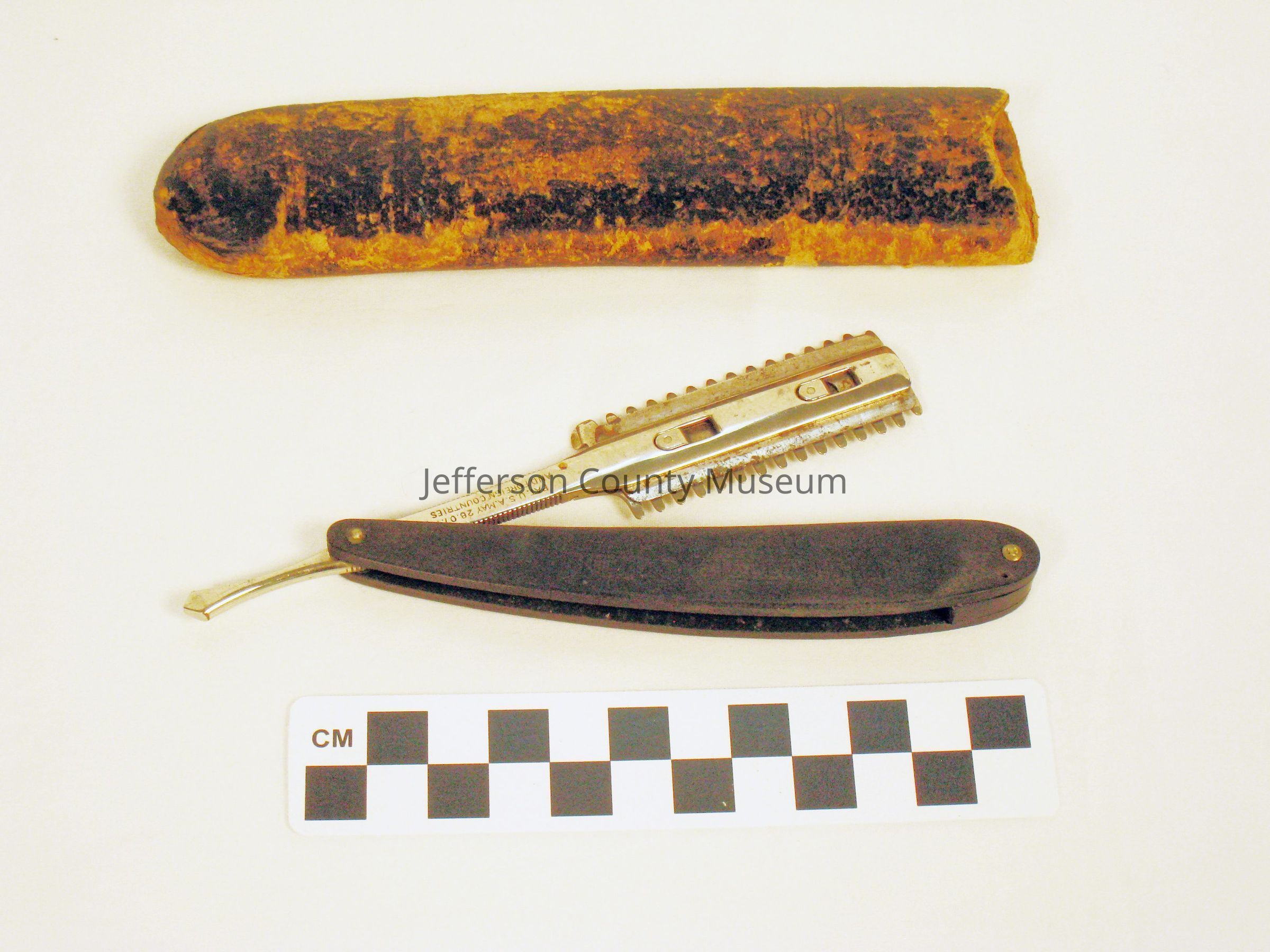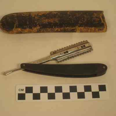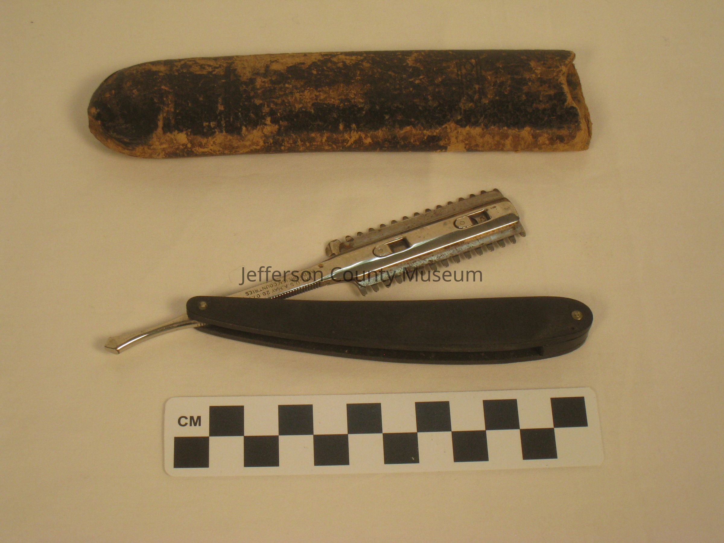 Hair cutting razor made like a straight razor with black plastic or composite handle. Blade has comb-like teeth on each side with disposable blade held in place. On one side of handle "TO BE USED WITH DURHAM DUPLEX BLADES". On other side of handle "DURHAM DEMONSTRATOR NOT TO BE SOLD". On comb part of blade "DURHAM DEMONSTRATOR". On shank "PAT. U.S.A. MAY 28, O7 AND FOREIGN COUNTRIES".Acquisition