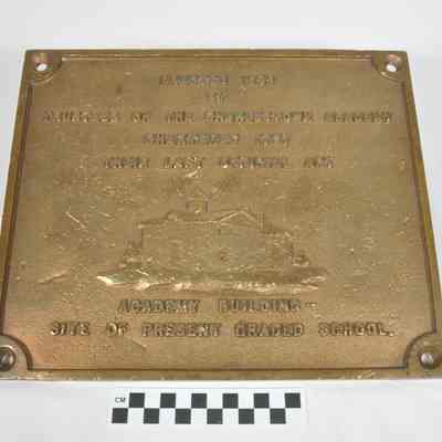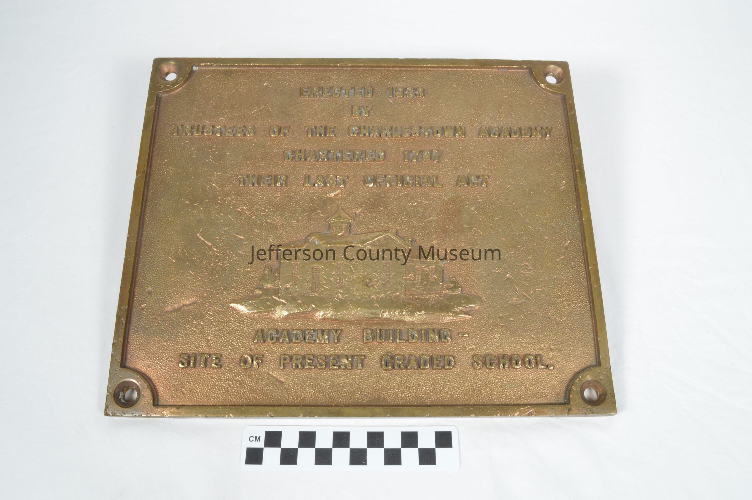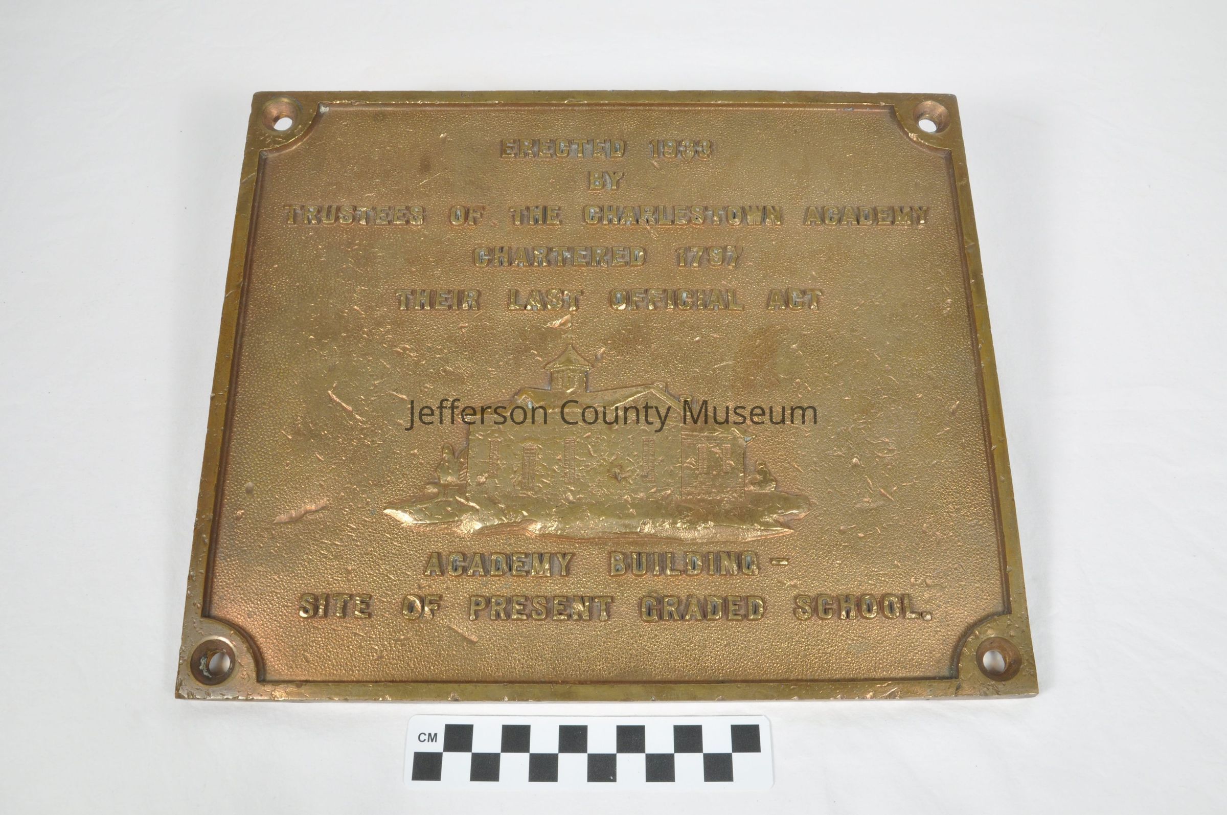 Brass plaque commemorating the Charles Town AcademyEntry/Object ID