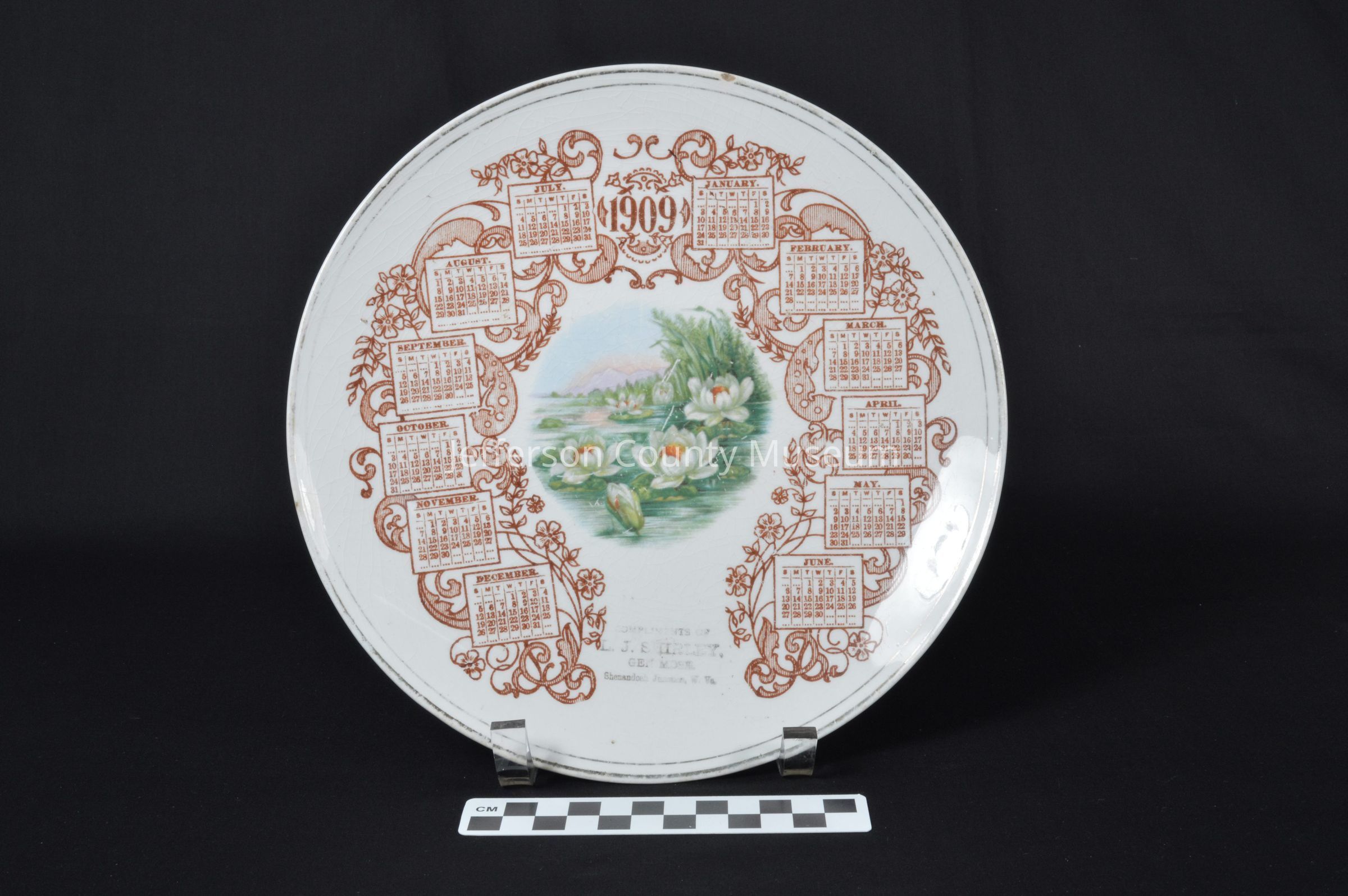 1909 calendar plate advertising L. J. Shirley store in Shenandoah JunctionEntry/Object ID