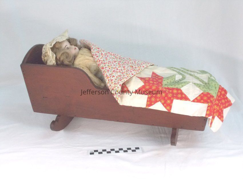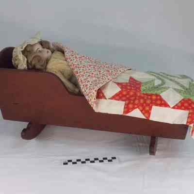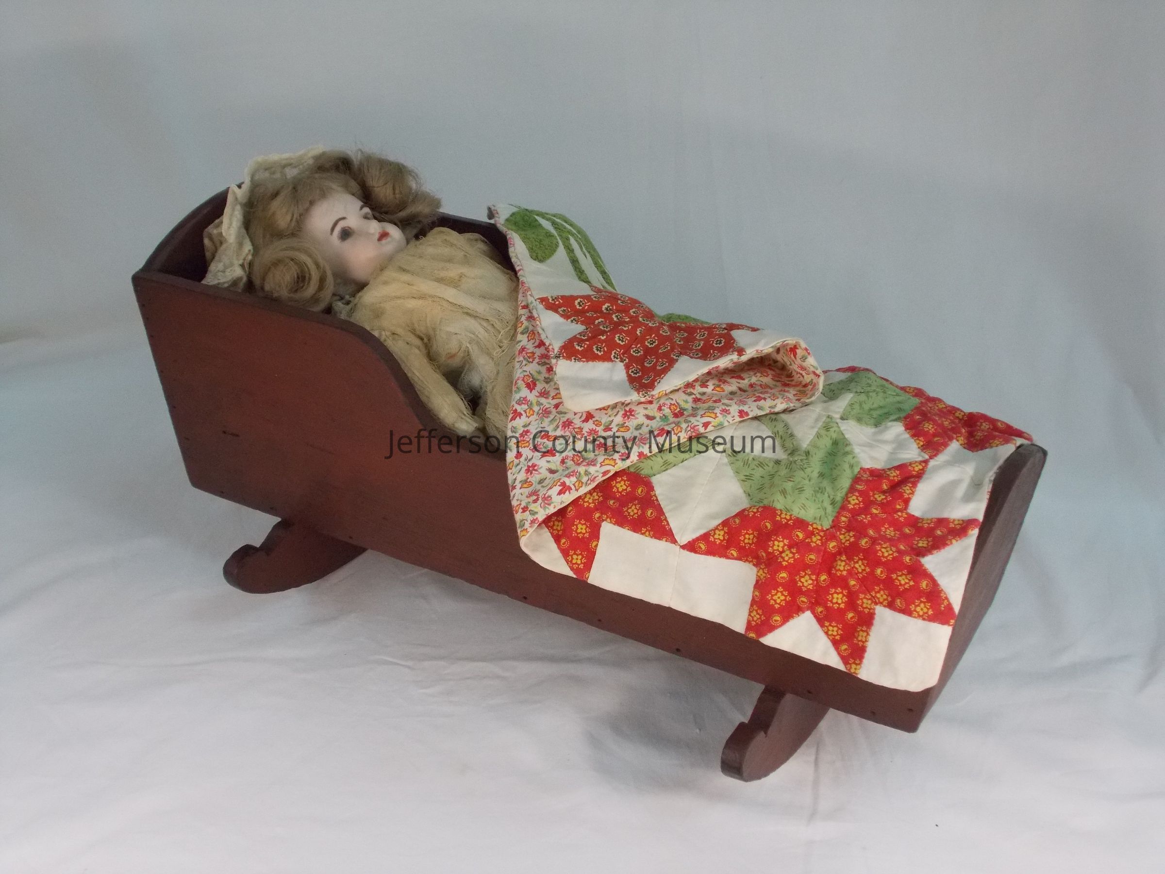 German bisque doll in handmade wooden cradle with handmade quiltEntry/Object ID