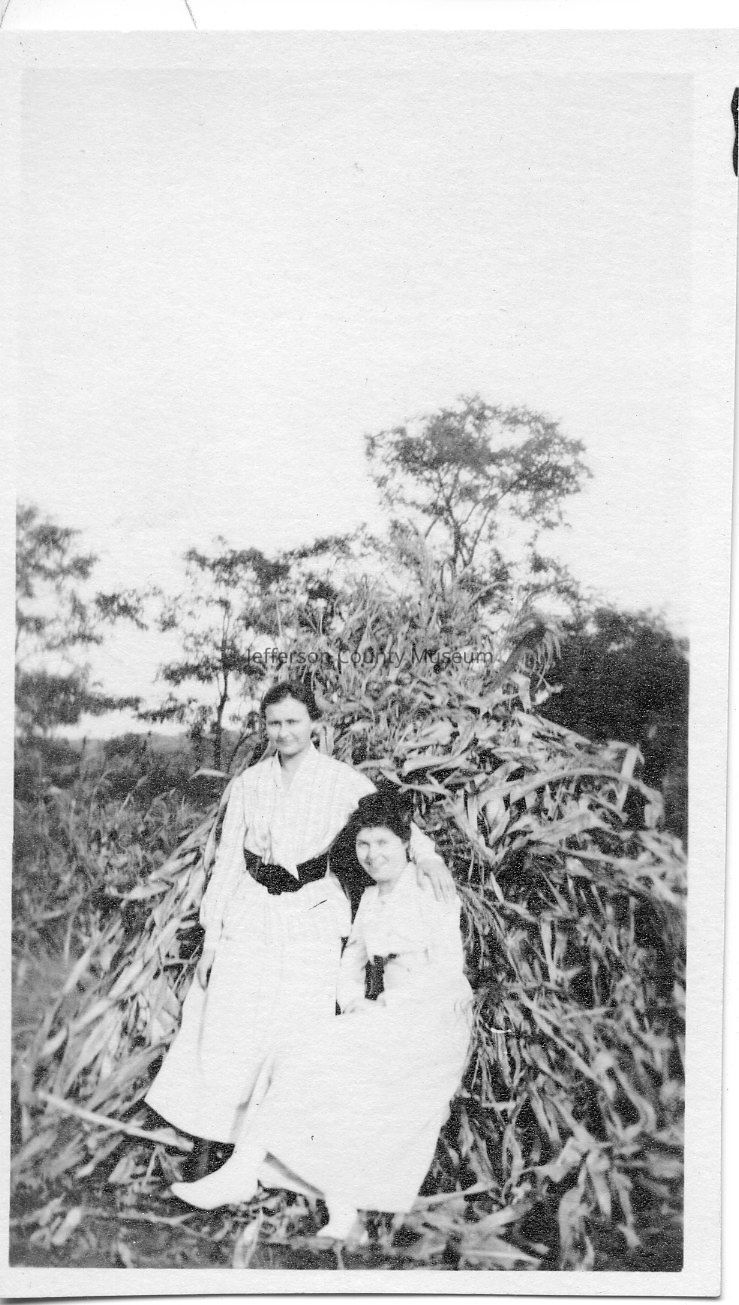 1918 photo of 2 women, 1 of whom is C.D.G.M. (standing), the seated woman may be her cousin, Jane Gardner Jenkins, but not certain (photographer is unknown; writing on reverse is that of C.D.G.M. C.D.G.M. sent photo to James William Milton during WWI, but letter and photo were returned to her)