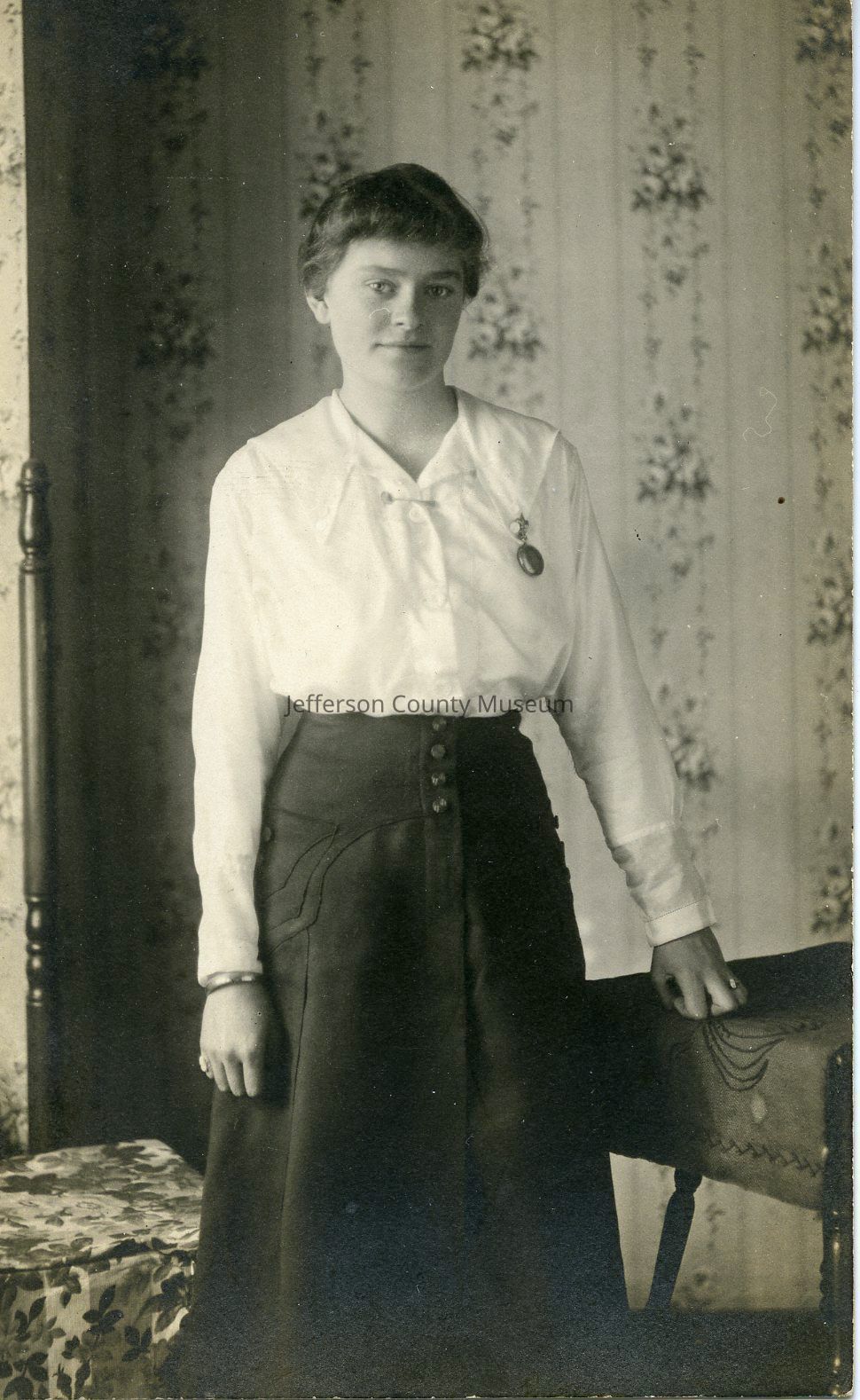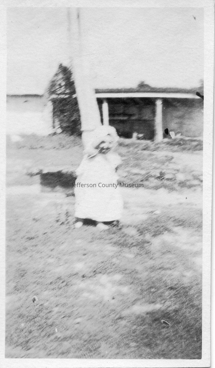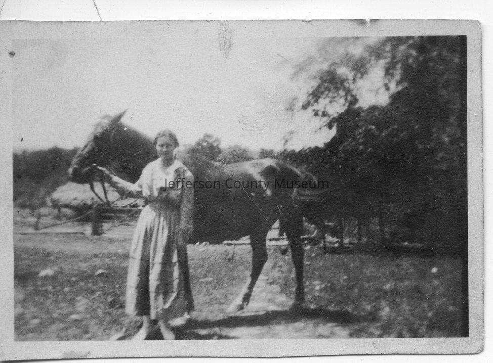 1918 photo of Ella Mae Hill (later Ella Mae Cave), at Kanode place, near Rippon