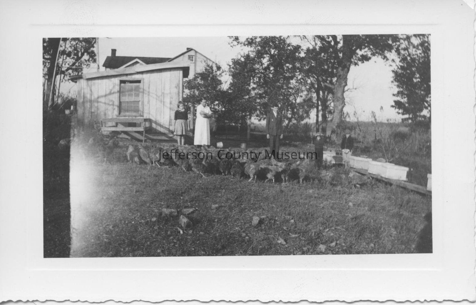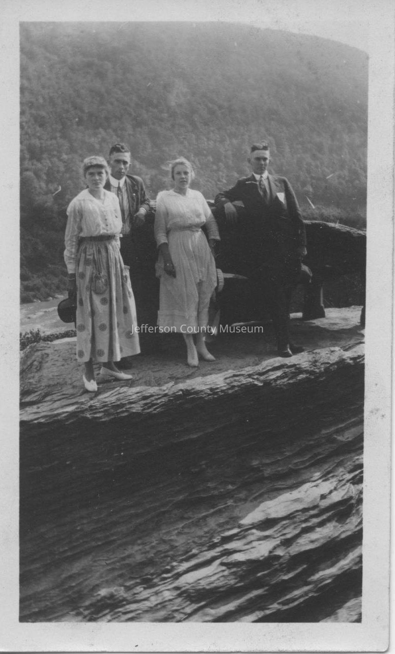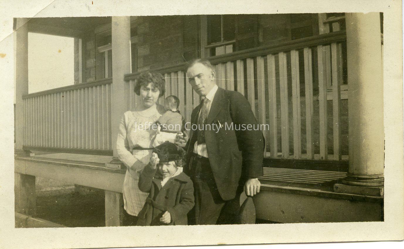 photo of Mr. & Mrs. Leslie, Clara Leslie (wearing hat), a Hill cousin next to Clara, and Erroll Leslie in front