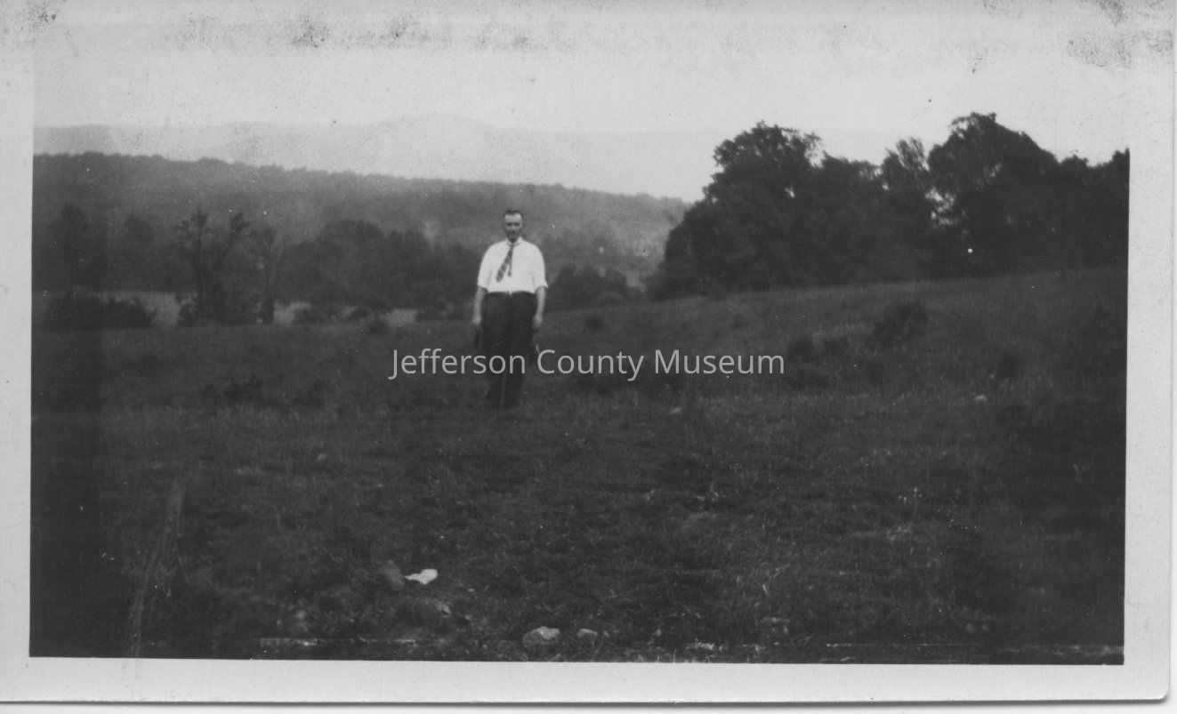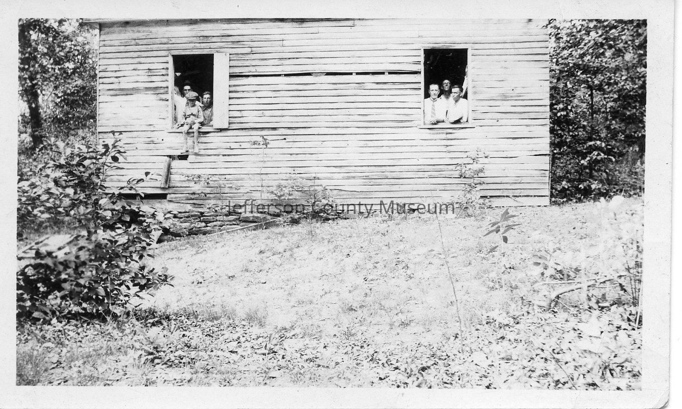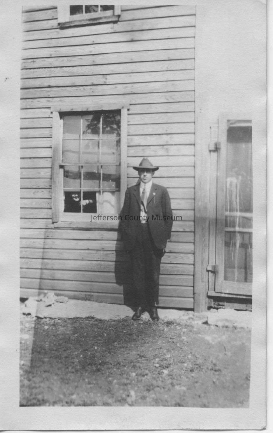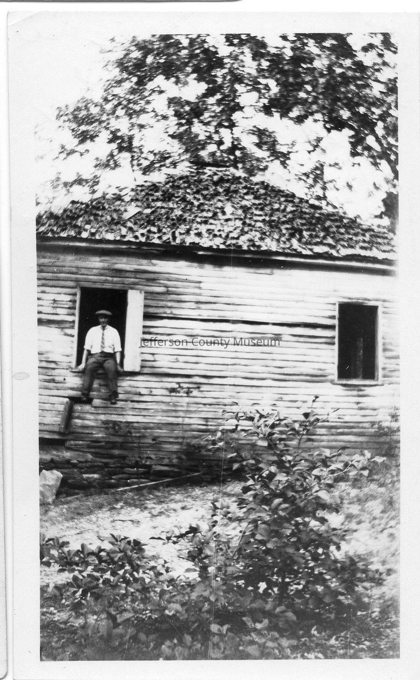 photo of Frank Hill in window of "Old Furnace" Church in 1925 or 1926, handwriting on back of photo is that of C.D.G.M. (Frank Hill would have been a relative [probably a cousin] of James Wiliam Milton)
