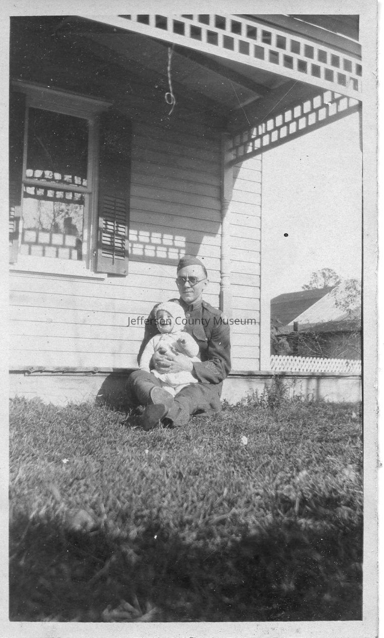 1918 photo of Ella Mae Hill (later Ella Mae Cave), being held by either Lucy Chapman