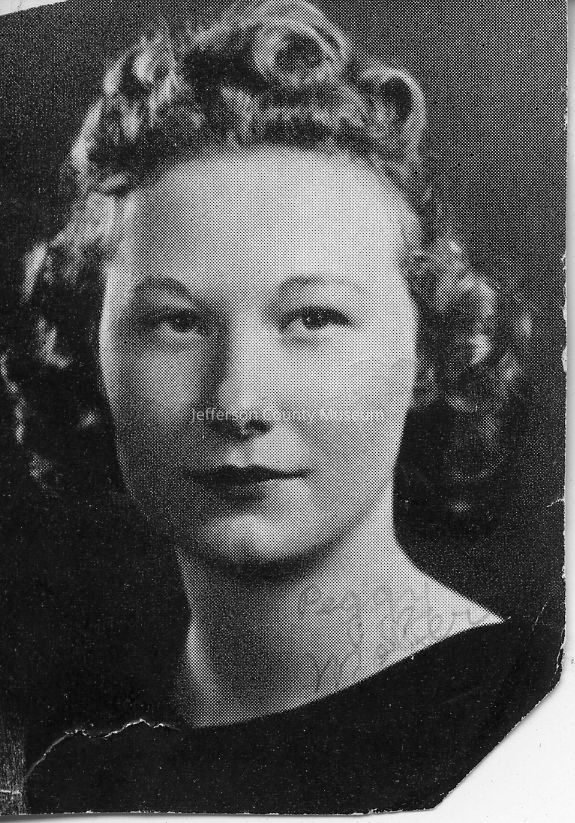 photo of Peggy Moler (clipped from a copy of the 1939 Charles Town High School Rambler); on reverse is partial photo of young man identified; handwritten in pencil in lower right corner of woman's photo is "Peggy Moler"