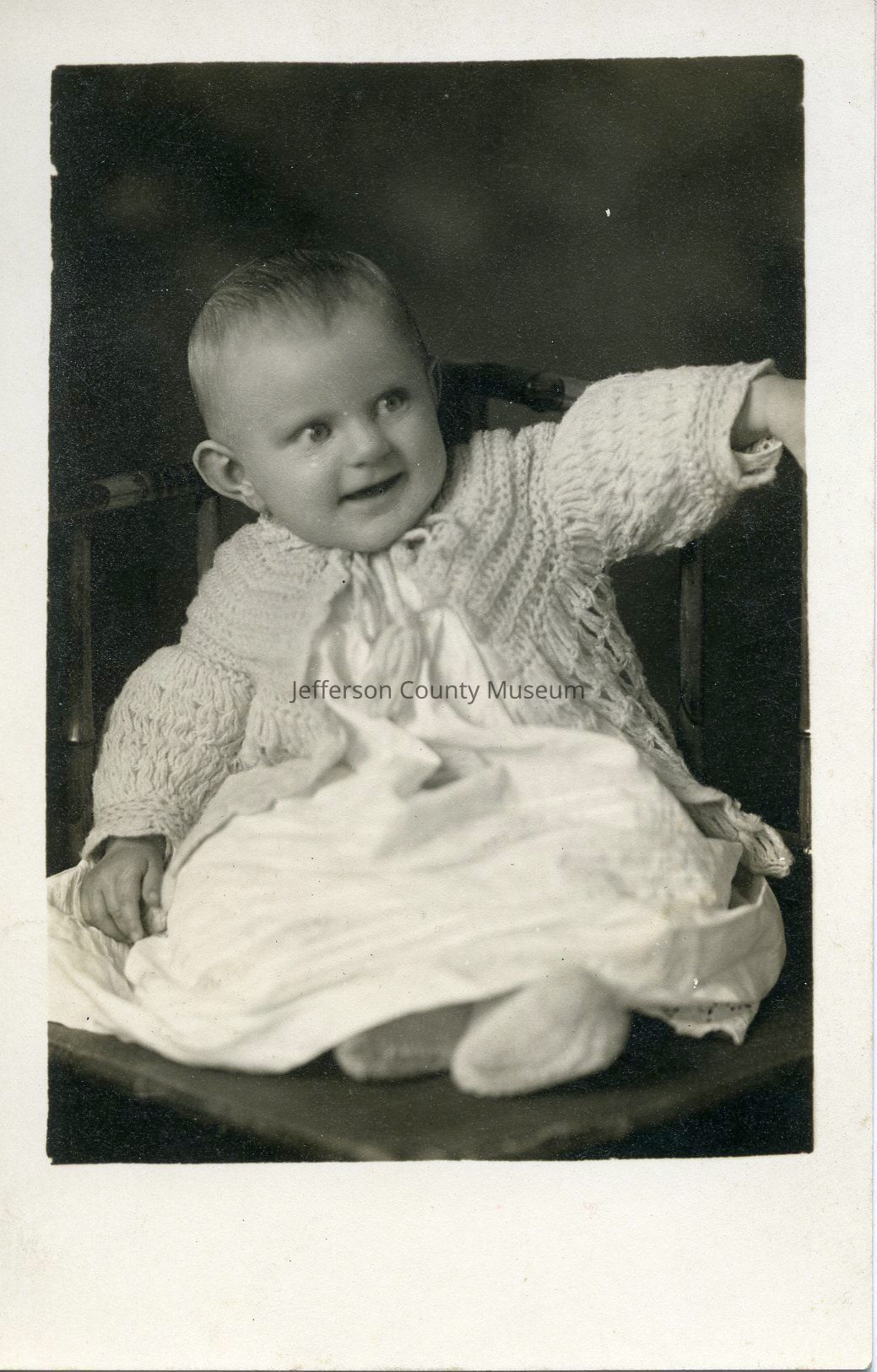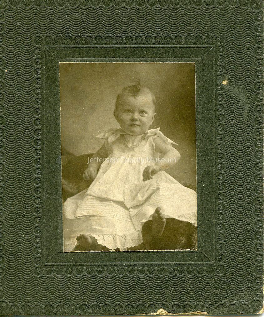 photo on cardboard backing, photo of Edith ("Jane") Gardner, about six months old, photo taken around early 1903