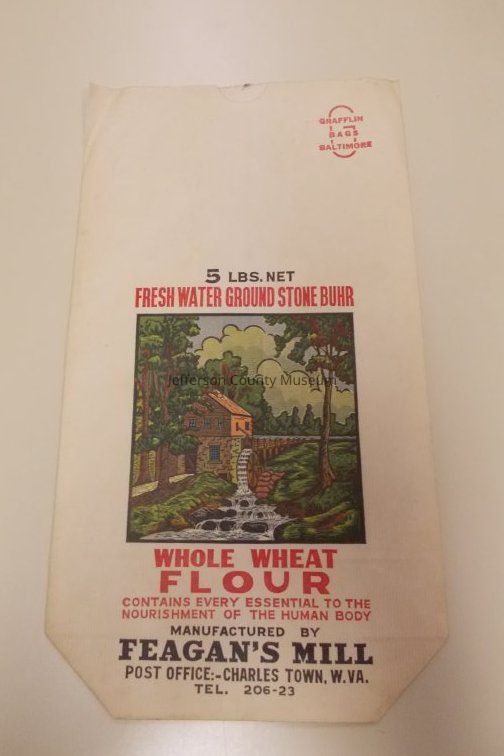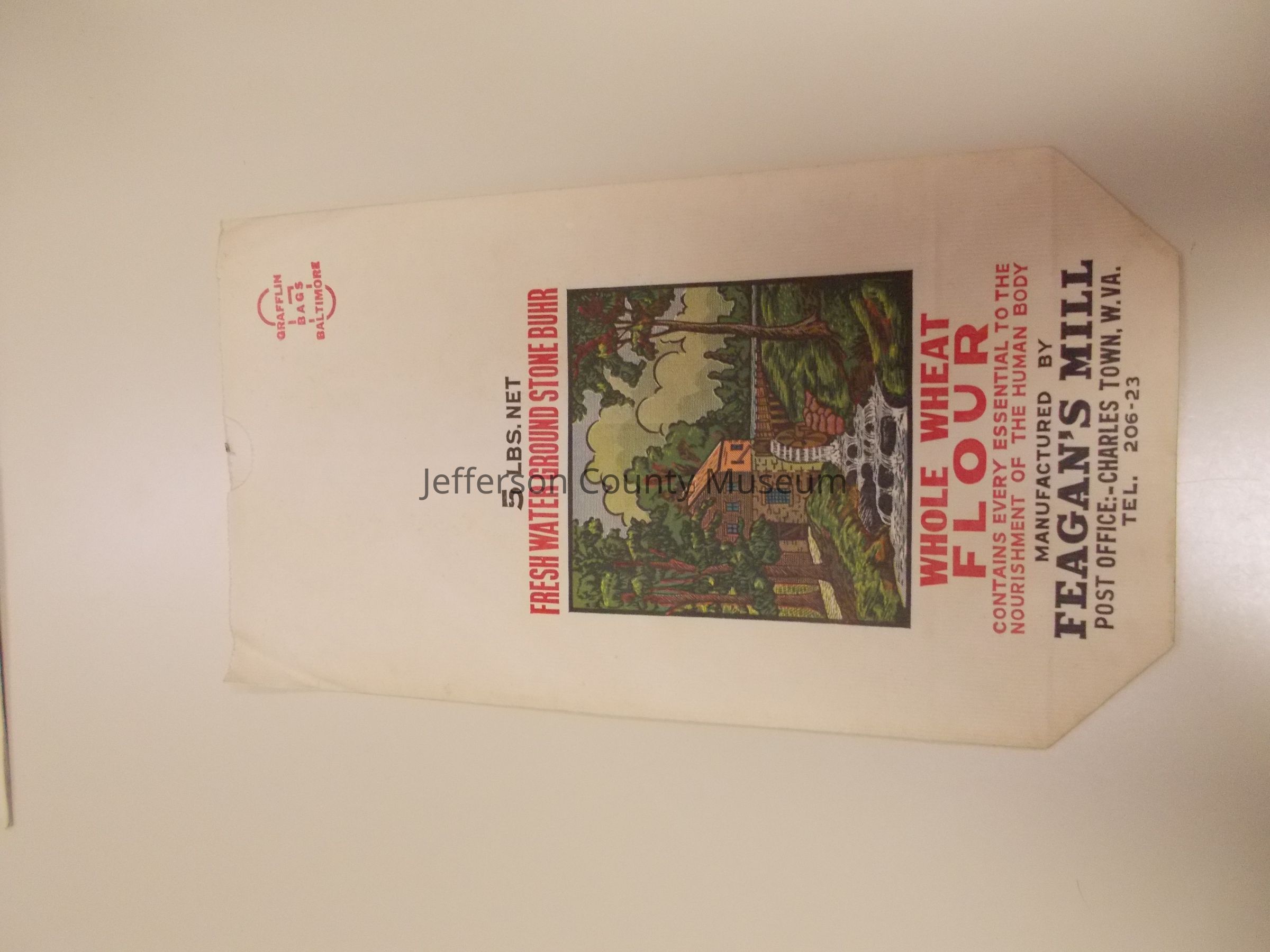 WHOLE WHEAT FLOUR CONTAINS EVERY ESSENTIAL TO THE NOURISHMENT OF THE HUMAN BODY MANUFACTURED BY FEAGAN'S MILL POST OFFICE:-CHARLES TOWN, W.VA. TEL. 206-23. Bottom of Bag reads: WHOLE WHEAT FLOUR.Acquisition